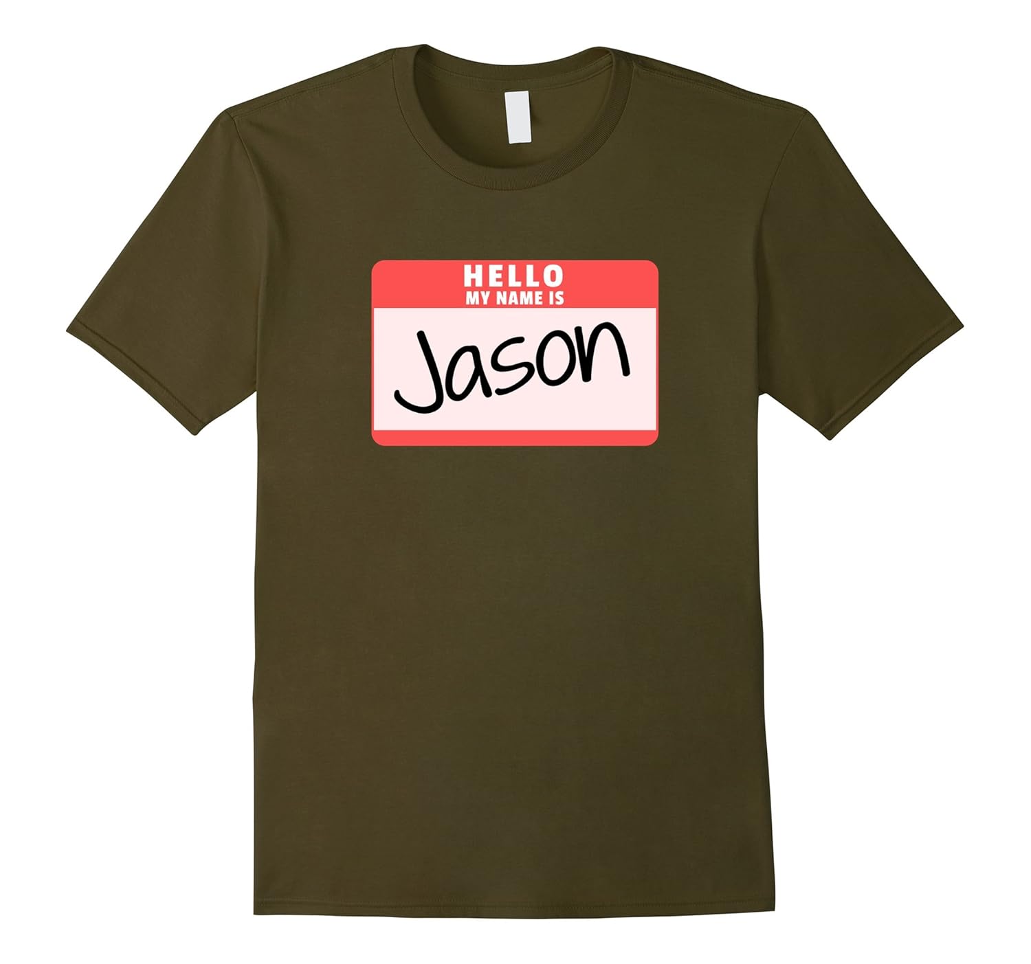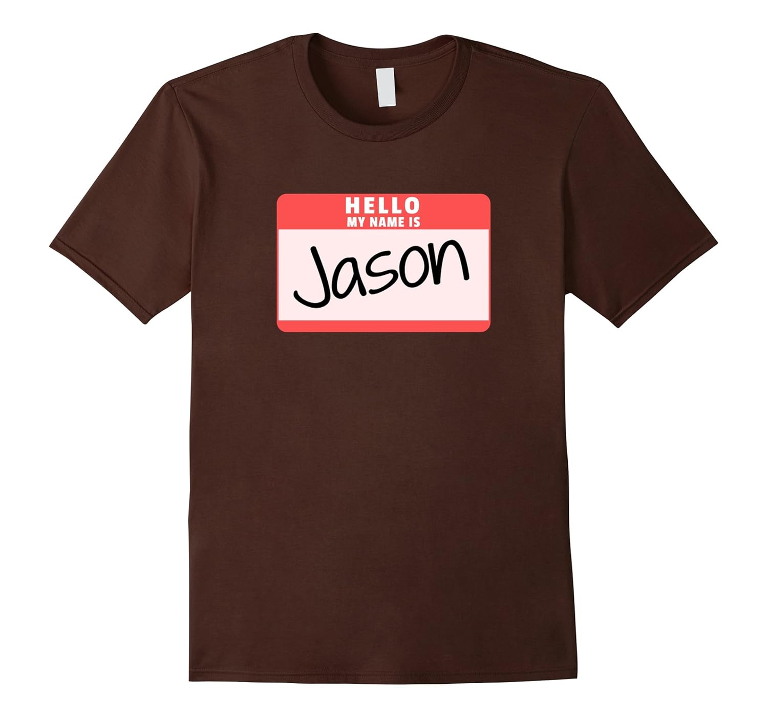 Solid colors: 100% Cotton; Heather Grey: 90% Cotton, 10% Polyester; All Other Heathers: 65% Cotton, 35% Polyester, Imported, Machine wash cold with like colors, dry low heat, Wear this Hello My Name is Jason funny halloween t-shirt along with a hockey mask and a machete, axe, spear, crowbar, or pipe and your costume is complete! Great idea for halloween parties, trick or treat, or pumpkin carving on Halloween!, Funny name tag of Jason is a great simple halloween costume t-shirt idea for a killer costume. Great for people with no costumes or simply don”t like wearing big costumes. Wear a halloween t-shirt instead so you won”t get too sweaty!, Lightweight, Classic fit, Double-needle sleeve and bottom hem