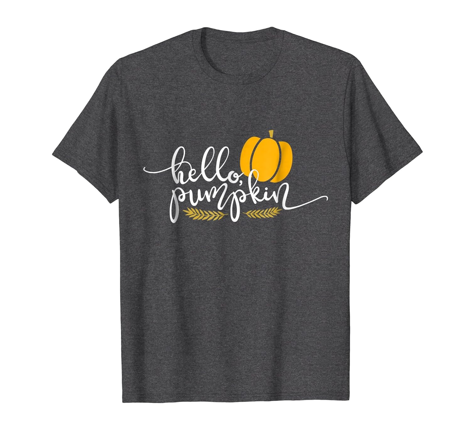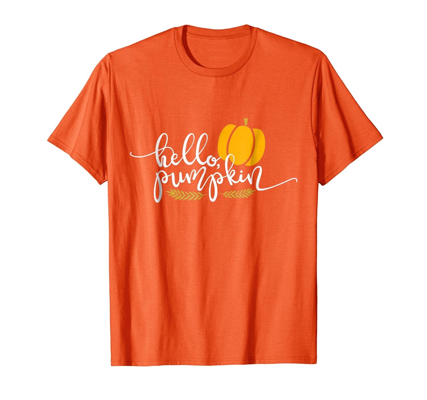 Solid colors: 100% Cotton; Heather Grey: 90% Cotton, 10% Polyester; All Other Heathers: 50% Cotton, 50% Polyester; Imported; Machine wash cold with like colors, dry low heat; Gear up for Fall fashion with this adorable Hello Pumpkin shirt.; Featuring a beautiful pumpkin, this tee will get you all ready for pumpkin patch picking at the farm with your family. This shirt is perfect for your fall photoshoots.; Lightweight, Classic fit, Double-needle sleeve and bottom hem