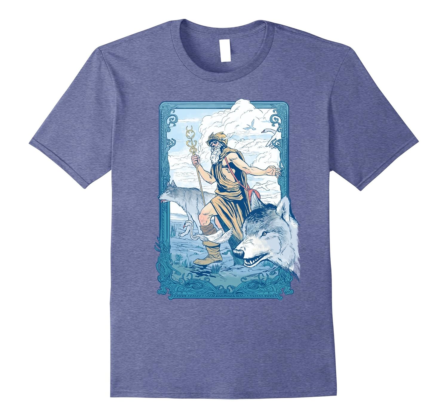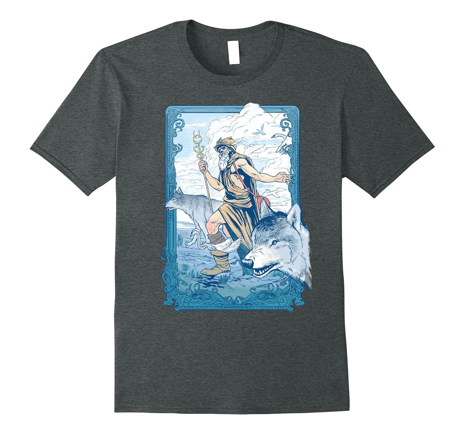 Solid colors: 100% Cotton; Heather Grey: 90% Cotton, 10% Polyester; All Other Heathers: 65% Cotton, 35% Polyester, Imported, Machine wash cold with like colors, dry low heat, This is the perfect T-Shirt for any fan of mythology, particularly Greek Mythology or Hermes. Featuring the Greek God Hermes sheparding wolves across the meadow with his signature staff and wing tipped shoes. Lightweight, Classic fit, Double-needle sleeve and bottom hem