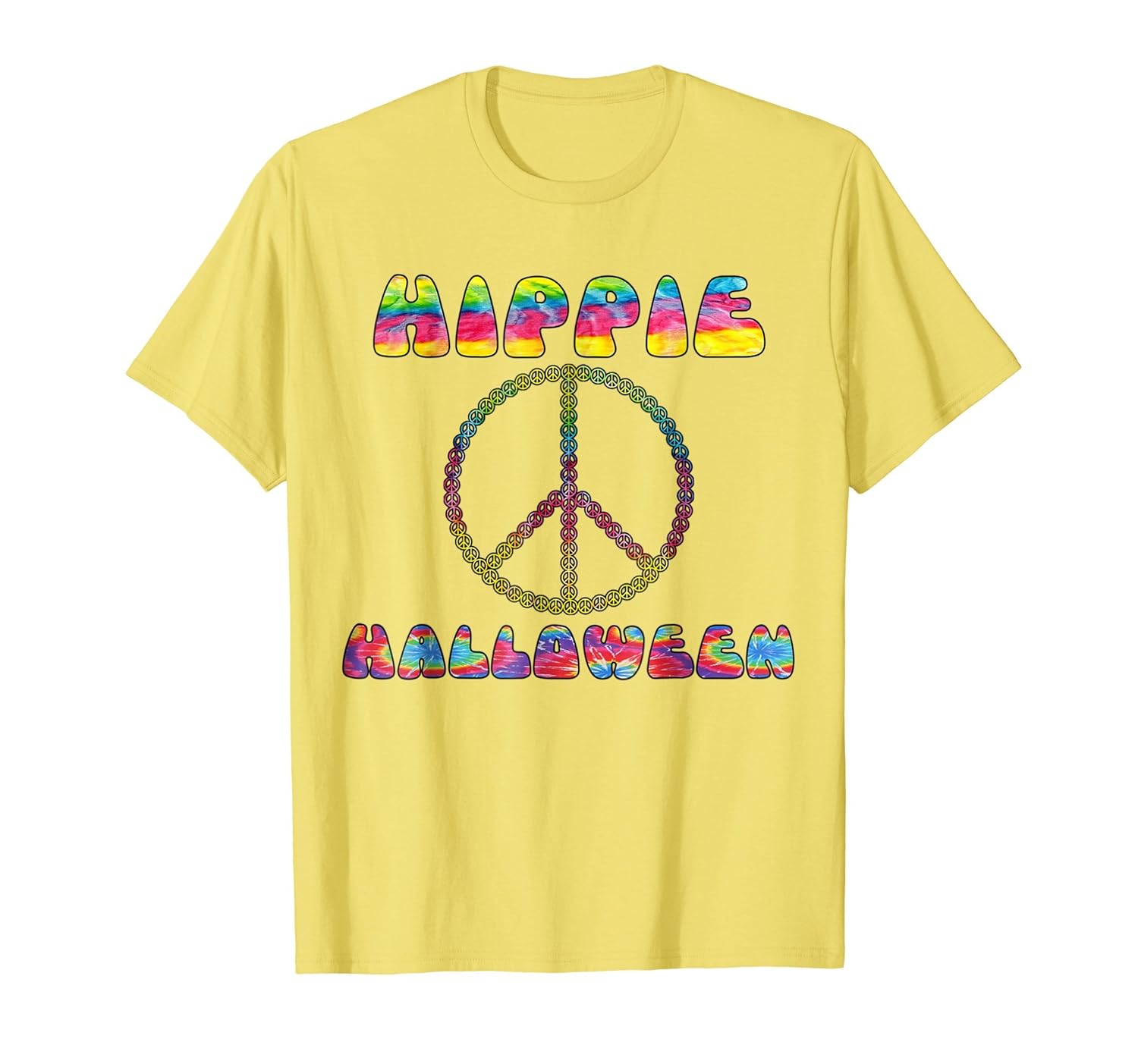 Solid colors: 100% Cotton; Heather Grey: 90% Cotton, 10% Polyester; All Other Heathers: 50% Cotton, 50% Polyester; Imported; Machine wash cold with like colors, dry low heat; This vintage 1970s tee features retro graphic design. Seventies style font and tie dye colors read Hippie Halloween! Celebrate the 70s and this retro peace sign and love lifestyle with this colorful gift. Awesome for a 70s theme halloween costume.; This Vintage 1970s Hippie Halloween T-Shirt with peace sign looks like an old school T Shirt. Perfect for mom or dad, or a groovy grandparent. Anyone born in the 70s, or who grew up a hippie. Great for Christmas or Halloween!; Lightweight, Classic fit, Double-needle sleeve and bottom hem