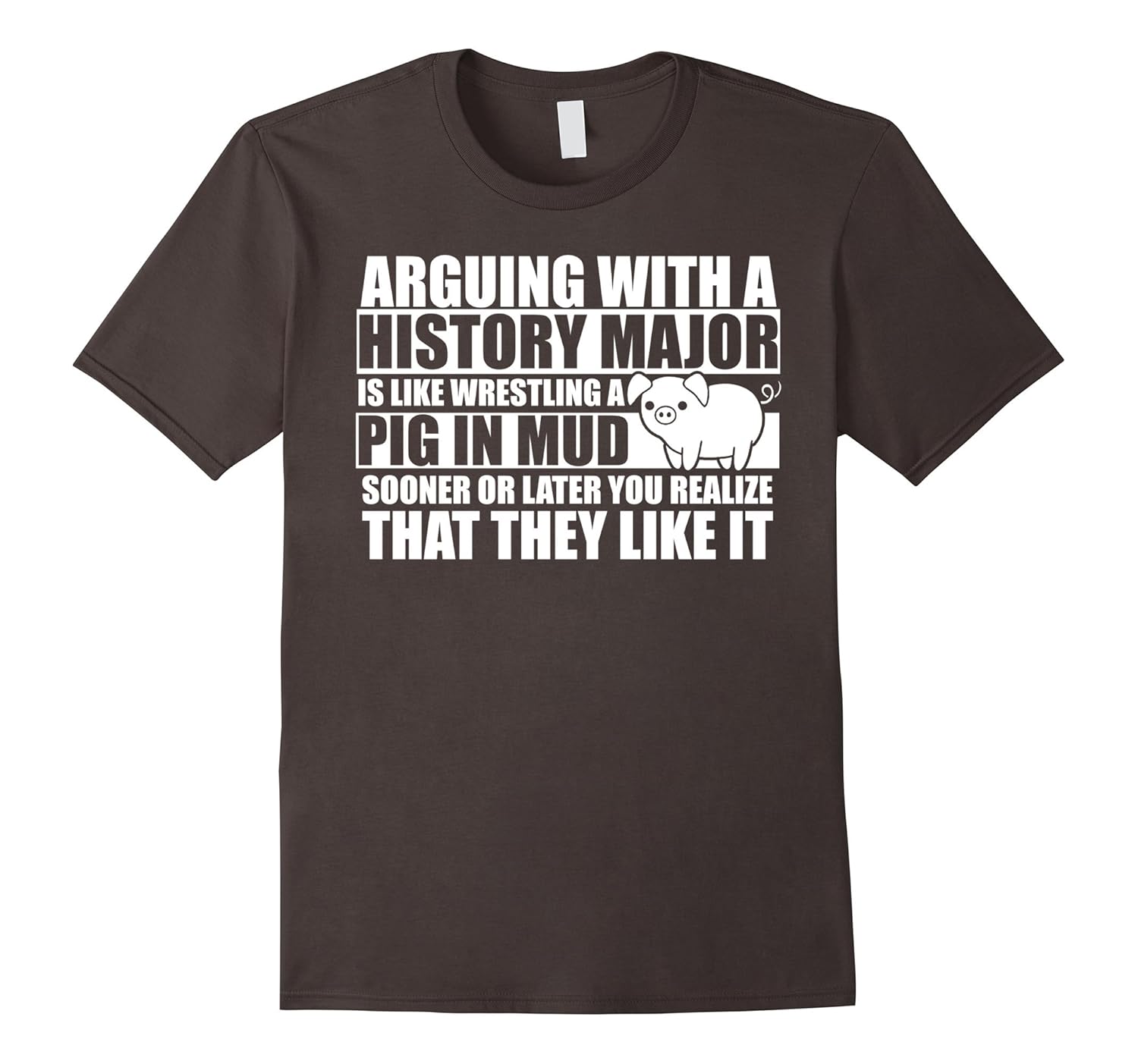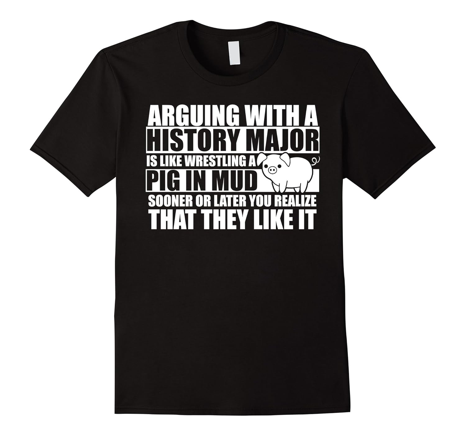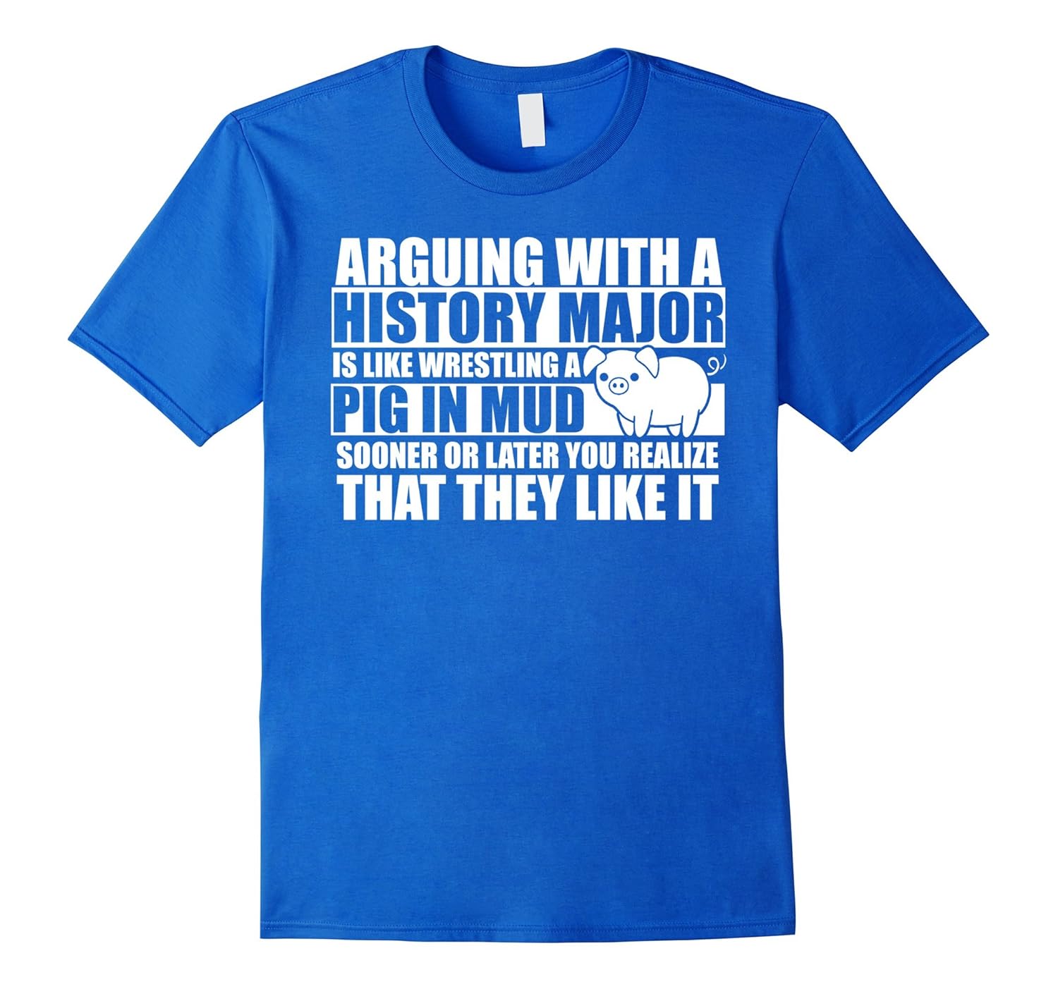 Solid colors: 100% Cotton; Heather Grey: 90% Cotton, 10% Polyester; All Other Heathers: 65% Cotton, 35% Polyester; Imported; Machine wash cold with like colors, dry low heat; Arguing with a history major is like wrestling a pig in the mud, sooner or later you realize that they like it. This funny history major t-shirt is sure to draw a smile and is very accurate.; This history major shirt makes for the perfect gift for any history student or history grad. Great as a graduation gift, for Christmas, birthdays, or any special occasion.; Lightweight, Classic fit, Double-needle sleeve and bottom hem