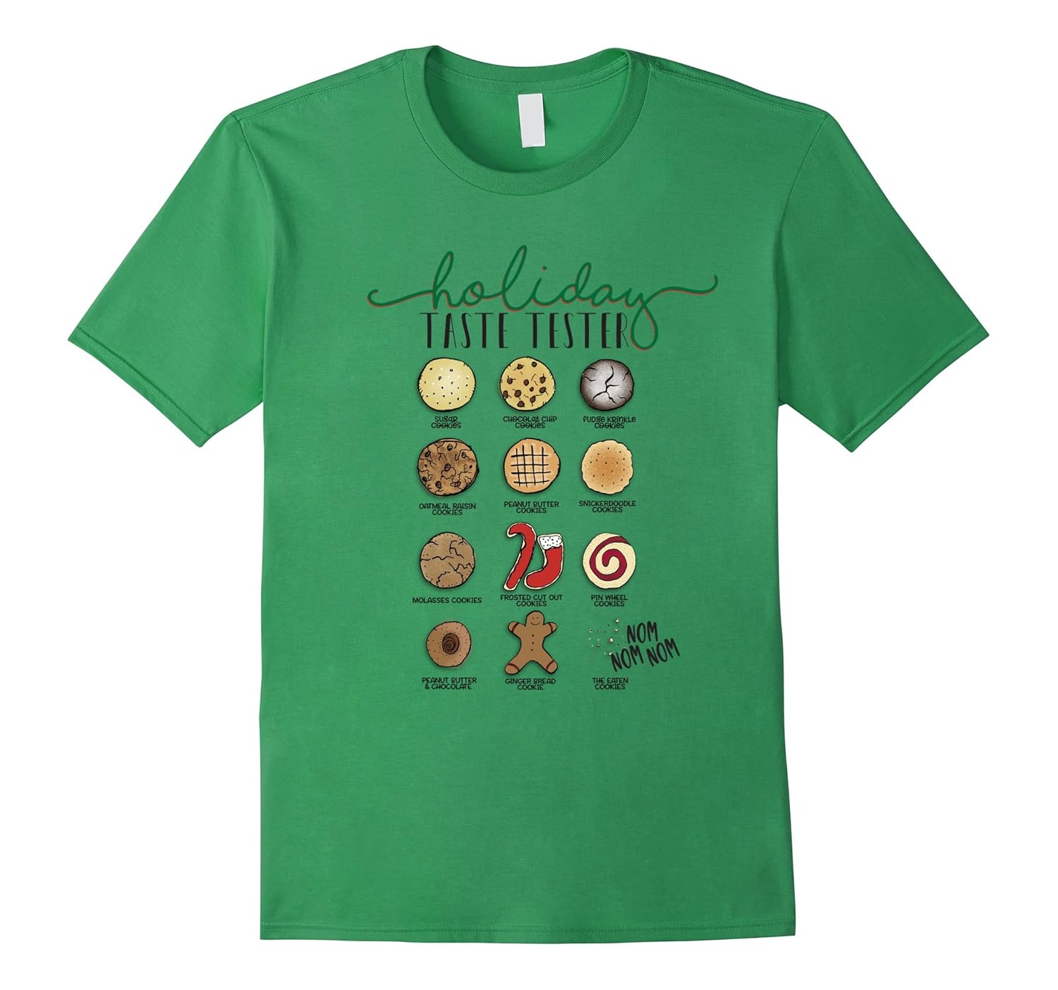 Solid colors: 100% Cotton; Heather Grey: 90% Cotton, 10% Polyester; All Other Heathers: 65% Cotton, 35% Polyester, Imported, Machine wash cold with like colors, dry low heat, Christmas cookies are a holiday tradition. Sugar cookies, snickerdoodles, Chocolate Chips, Oatmeal Raisin, Gingerbread, cut out cookies are all on this classic Holiday tee. Are you a baker, do you know a baker. Do your kids love to bake. This is a great gift idea for bakers. It is also a great gift idea for women who bake the cookies every year. YUMMY, Lightweight, Classic fit, Double-needle sleeve and bottom hem