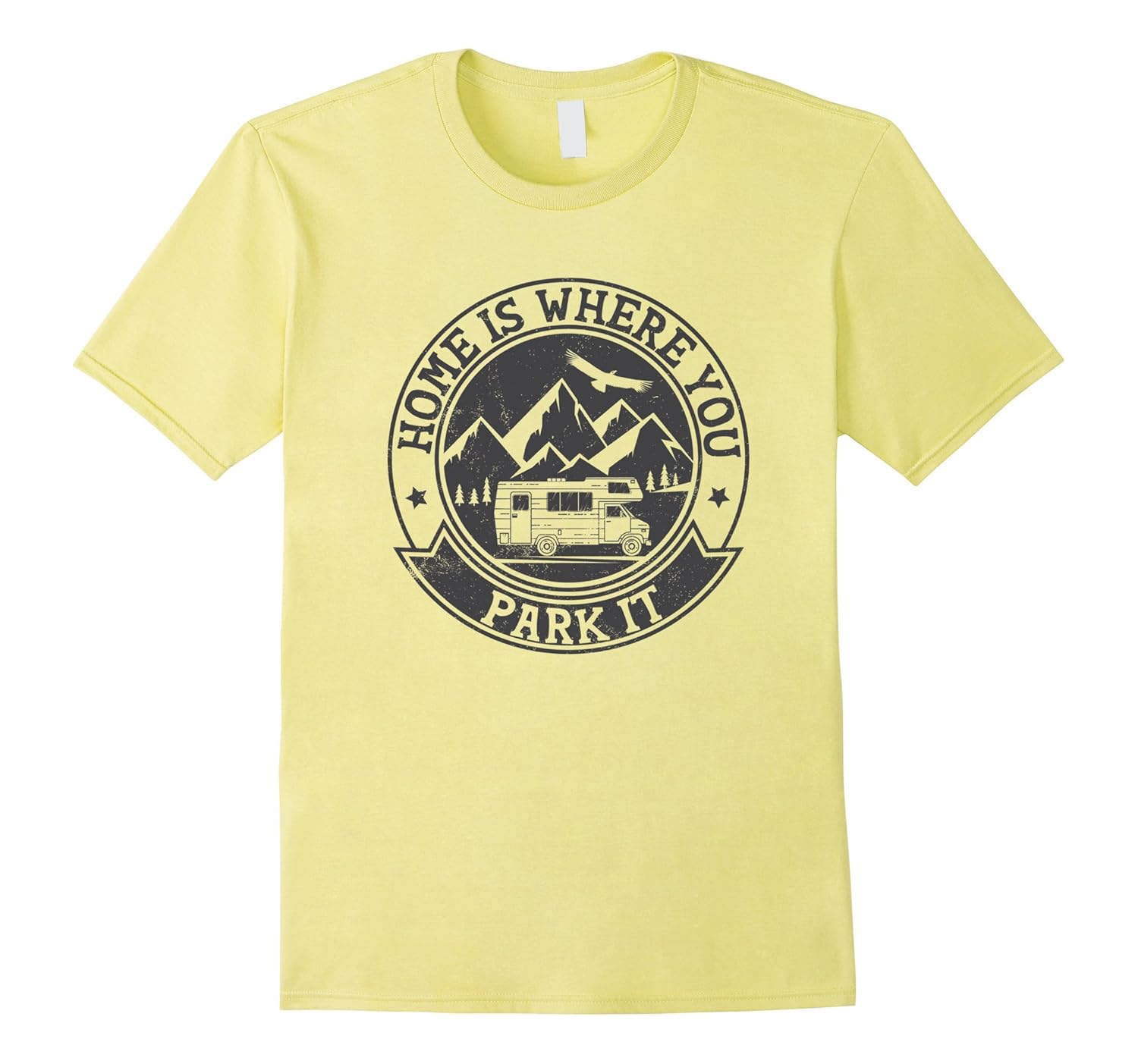 Solid colors: 100% Cotton; Heather Grey: 90% Cotton, 10% Polyester; All Other Heathers: 65% Cotton, 35% Polyester, Imported, Machine wash cold with like colors, dry low heat, RV campers know Home is Where You Park It. Perfect shirt for your next camping trip. Tee shirt says Home Is Where You Park It and is accompanied by an image of an rv camper, bird and mountains. Lightweight, Classic fit, Double-needle sleeve and bottom hem