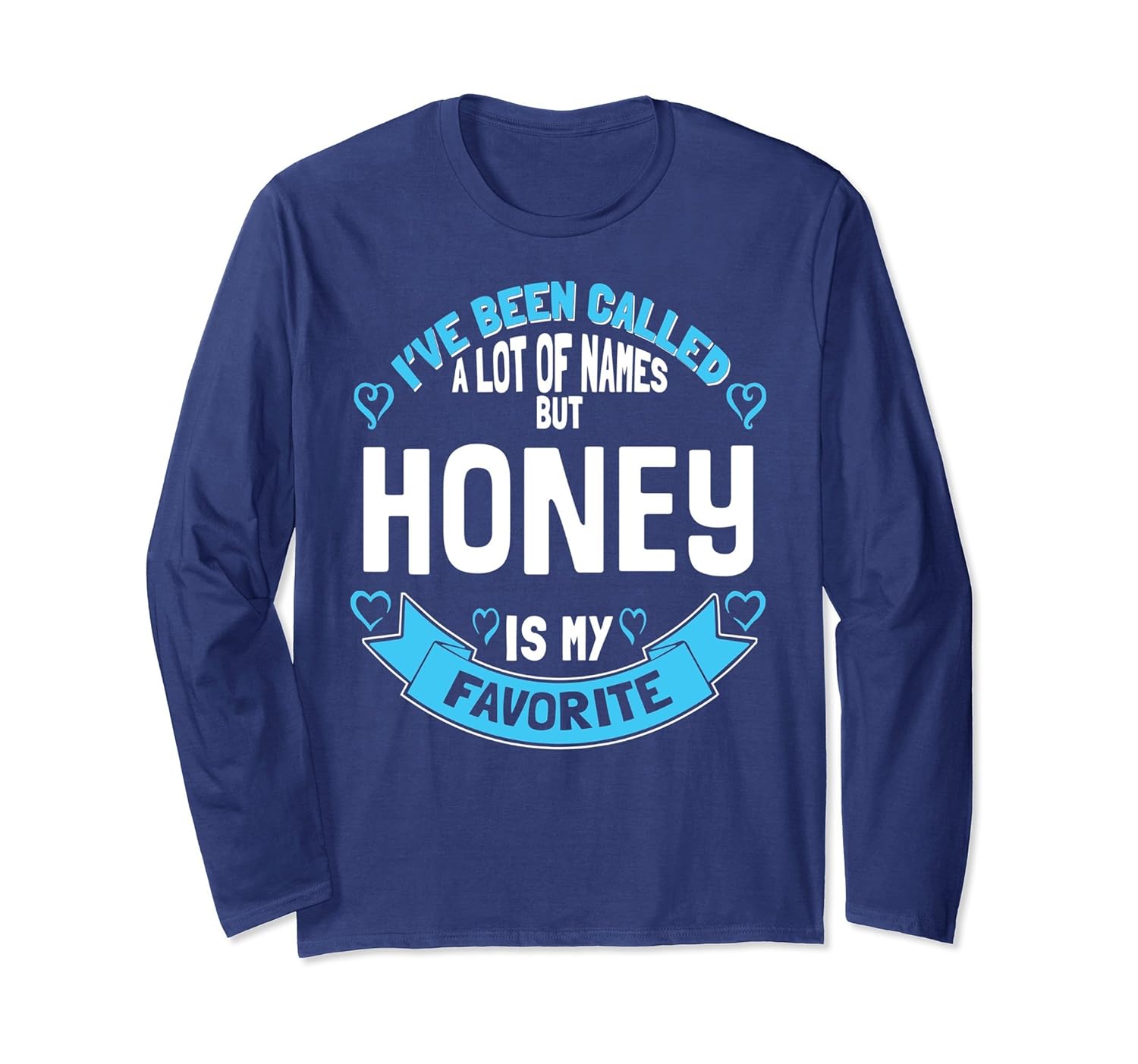 Solid colors: 100% Cotton; Heather Grey: 90% Cotton, 10% Polyester; All Other Heathers: 50% Cotton, 50% Polyester; Imported; Machine wash cold with like colors, dry low heat; Cute gift for grandmothers and moms named Honey! If your grandkids call you Honey, this Honey long sleeve shirt is the perfect Christmas Gift, Birthday Present or X-Mas Gift!; Ive Been Called a Lot of Names but Honey is my Favorite! Great gift for Honey and new grandparents during a pregnancy reveal for grandmas new name!; Lightweight, Classic fit, Double-needle sleeve and bottom hem