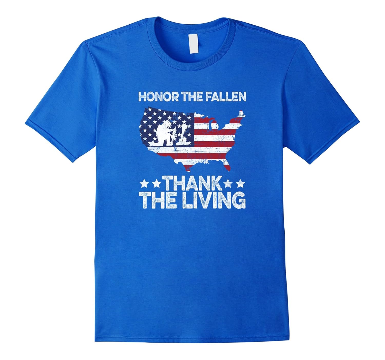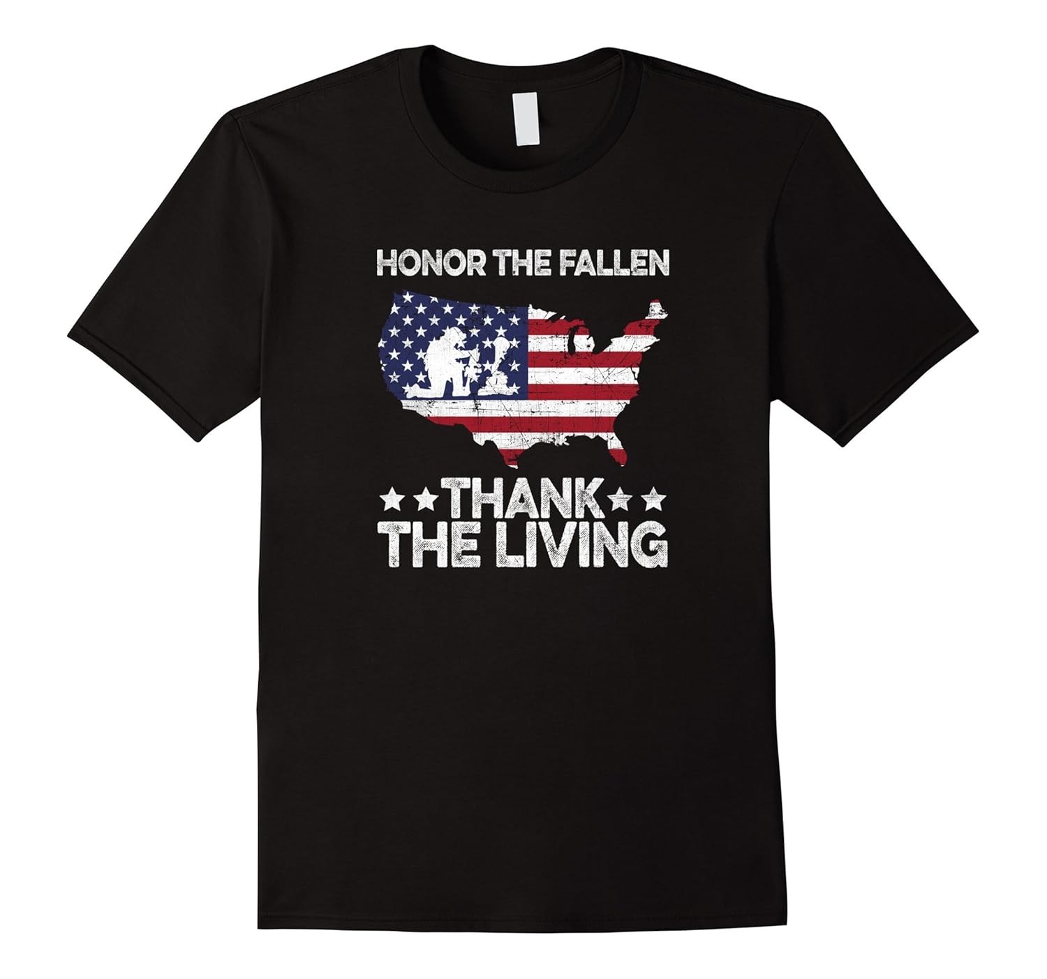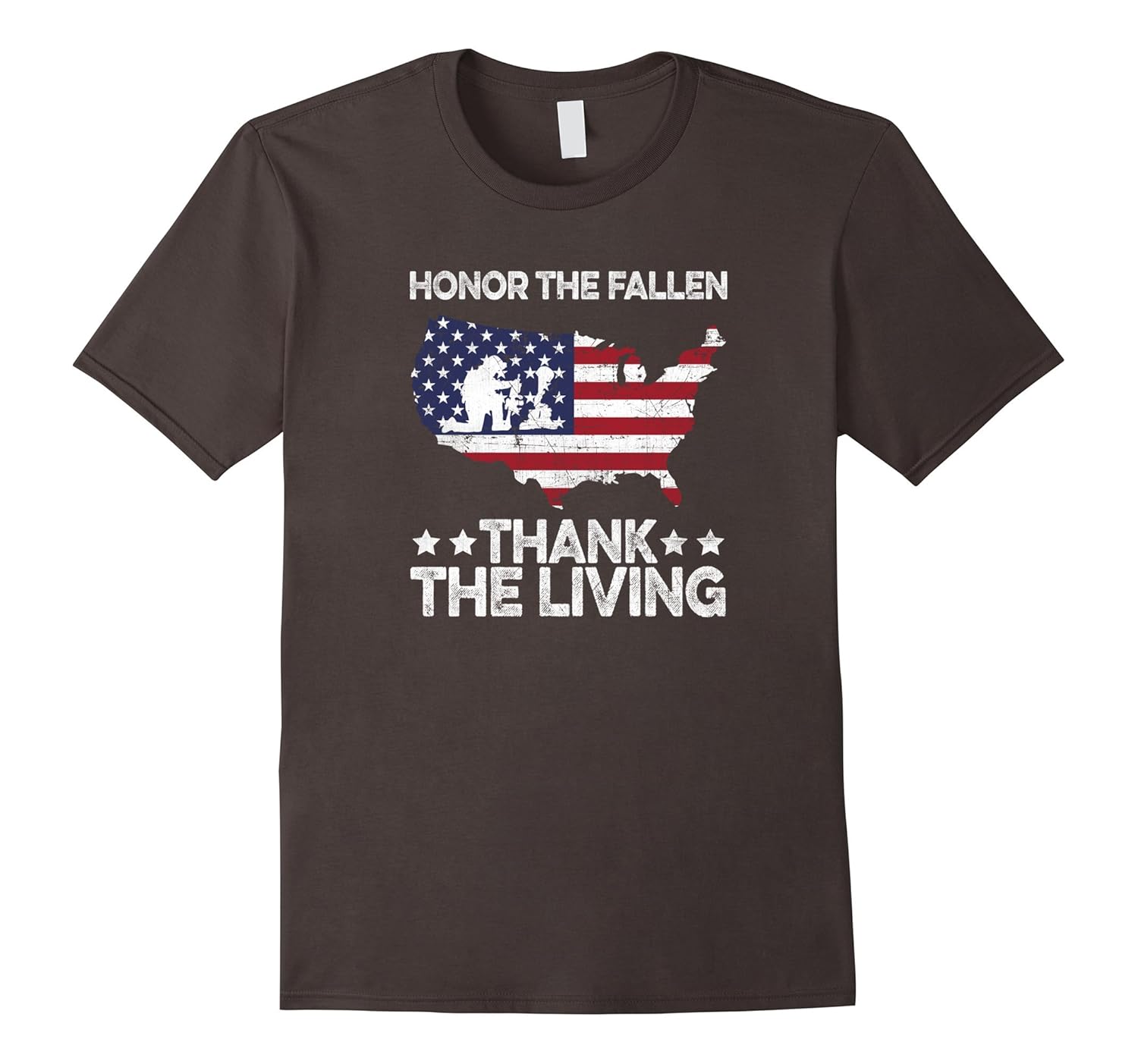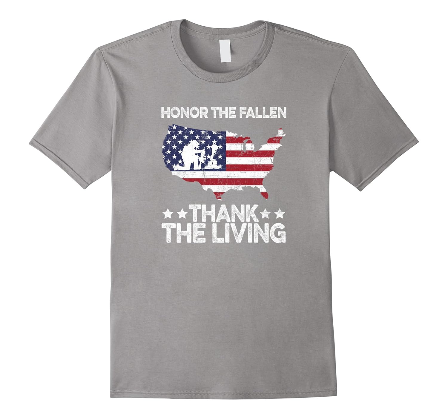 Solid colors: 100% Cotton; Heather Grey: 90% Cotton, 10% Polyester; All Other Heathers: 65% Cotton, 35% Polyester, Imported, Machine wash cold with like colors, dry low heat, Honor those who gave their lives for our nation, give thanks to those who inhabit it. This patriotic t shirt is a meaningful gift to any veteran, just as perfect for memorial day as for Thanksgiving. This Honor the Fallen Thank the Living Veteran Military T-Shirt is designed to be fitted. For a loose fit, please order a size up. Lightweight, Classic fit, Double-needle sleeve and bottom hem