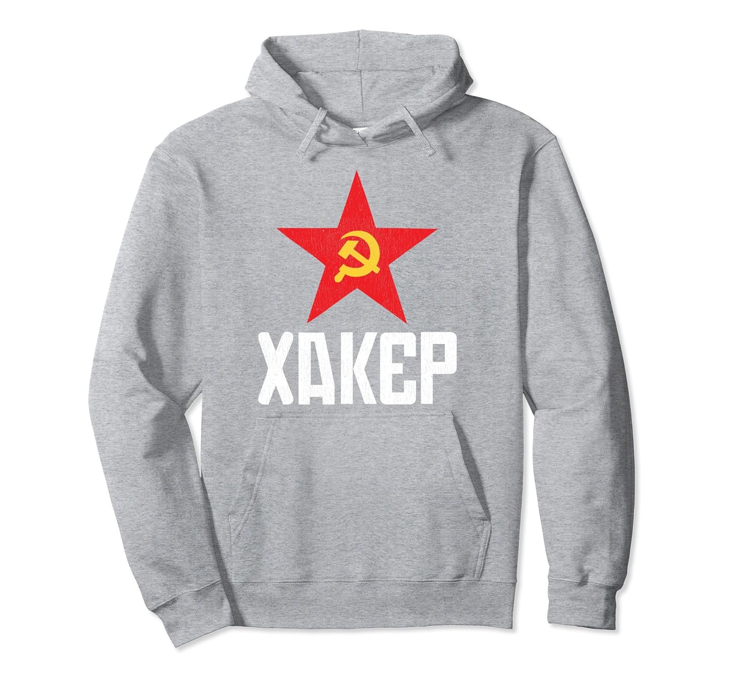 Solid colors: 80% Cotton, 20% Polyester; Heather Grey: 78% Cotton, 22% Poly; Dark Heather: 50% Cotton, 50% Polyester; Imported; Machine wash cold with like colors, dry low heat; UNIQUE: This Russian Hacker hoodie is perfect for the crazy Russian hacker in your life! Perfect apparel for rigging foreign elections, playing chess, wrestling bears, drinking vodka, and eating borscht. Goes great with any color tracksuit!; GIFT: A funny vintage Russian hacker gift for mom, dad, brother, sister, aunt, uncle, grandparents, and other friends and family. Wear this hoodie to LANs, Cons, CTF events, or practicing your blackhat techniques!; 8.5 oz, Classic fit, Twill-taped neck