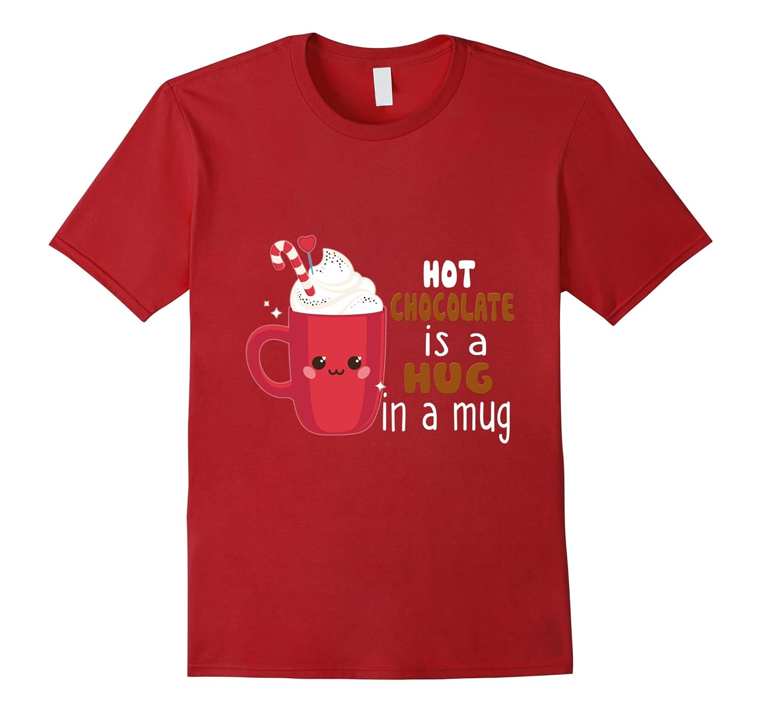 Solid colors: 100% Cotton; Heather Grey: 90% Cotton, 10% Polyester; All Other Heathers: 50% Cotton, 50% Polyester; Imported; Machine wash cold with like colors, dry low heat; Hot Chocolate Is A Hug In A Mug Cute Choco Shirt; Funny,Family,Relationship,Sports,Music,Education,Outdoor,Animals,Occupation,Food,Hobbies,Religion,Cartoon,Sayings,Vintage And Fan Tee,Best Men Women Clothes For Birthdays,Holidays,Spacial Days,Events,Commemorative Days And Everyday Gifts Idea T-shirts.; Lightweight, Classic fit, Double-needle sleeve and bottom hem