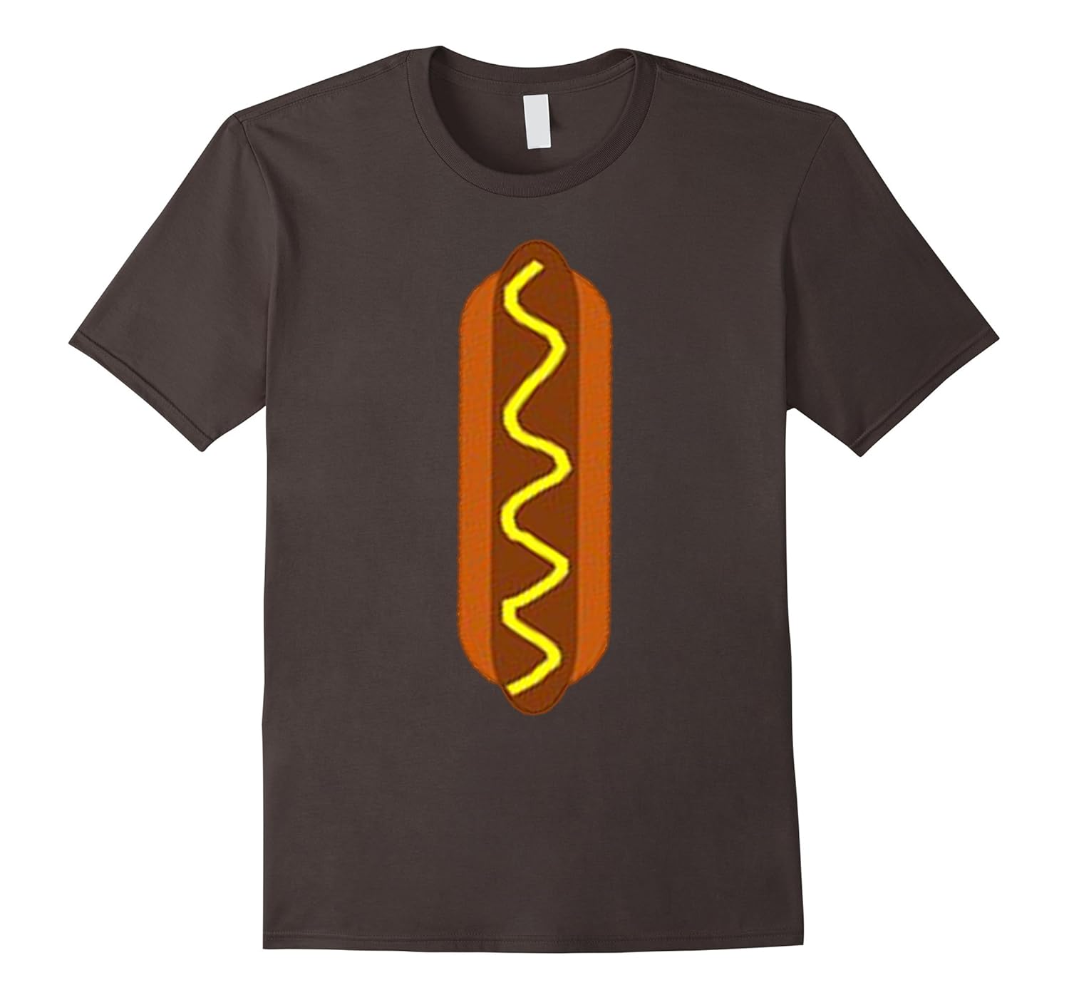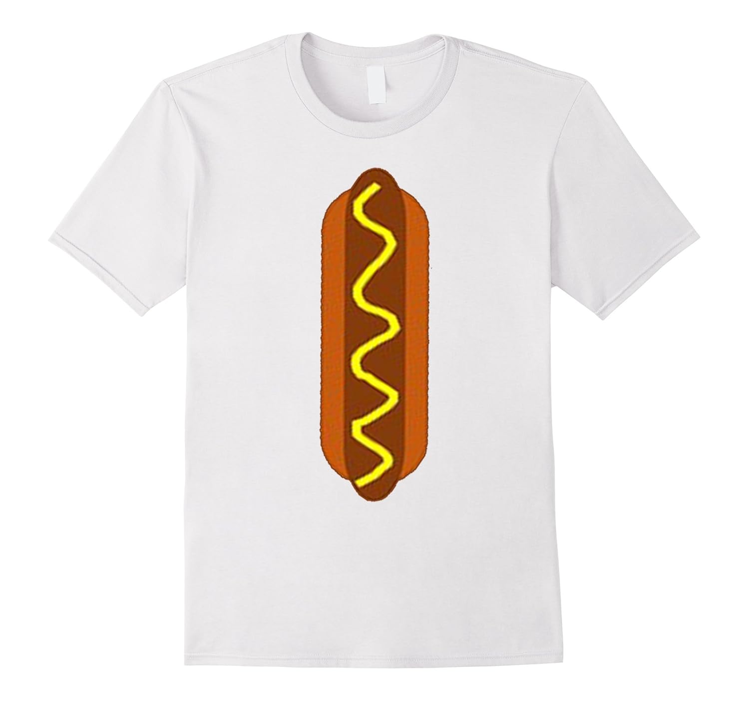 Solid colors: 100% Cotton; Heather Grey: 90% Cotton, 10% Polyester; All Other Heathers: 65% Cotton, 35% Polyester; Imported; Machine wash cold with like colors, dry low heat; Hot Dog Costume Tee Shirt. Dont forget to squeeze some ketchup.; This t-shirt features classic american fast food comfortable lightweight hot dog with mustard, sausage meat roll between bread bun.; Lightweight, Classic fit, Double-needle sleeve and bottom hem