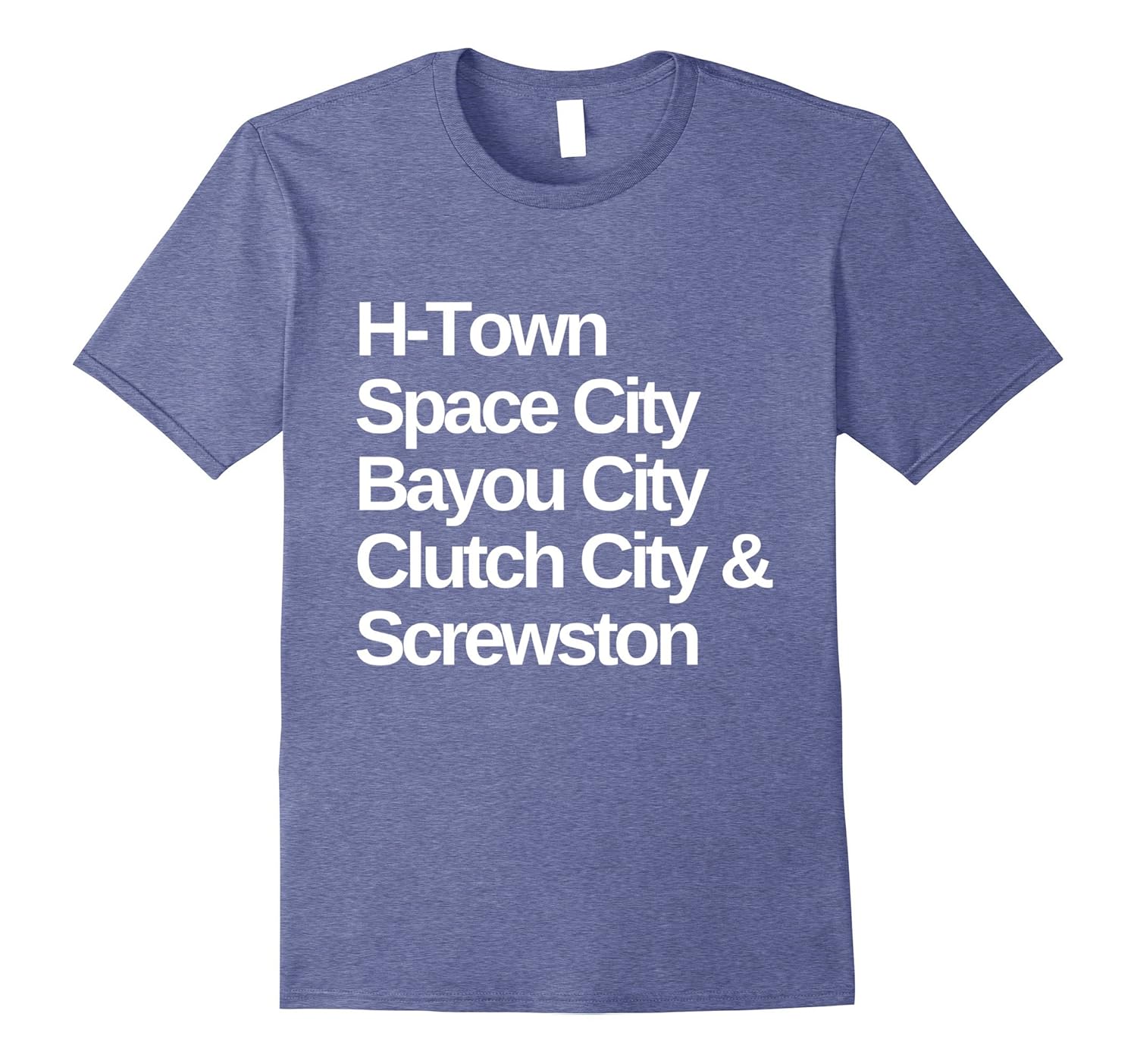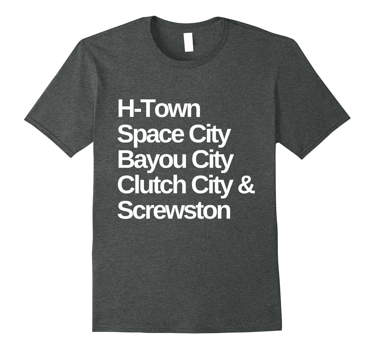 Solid colors: 100% Cotton; Heather Grey: 90% Cotton, 10% Polyester; All Other Heathers: 65% Cotton, 35% Polyester, Imported, Machine wash cold with like colors, dry low heat, This Houston shirt lists the nicknames of Houston like H-Town, Space City, Bayou City, Clutch City, and Screwston. Makes the best gift for fans of Houston Texas. This super soft Houston nicknames tee shirt will be a big hit in Houston or any part of Texas. Lightweight, Classic fit, Double-needle sleeve and bottom hem
