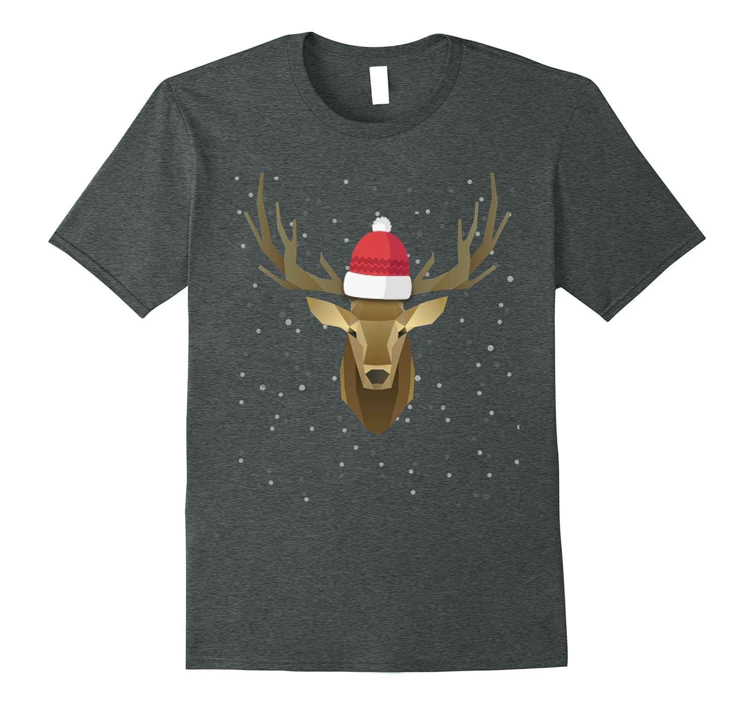 Solid colors: 100% Cotton; Heather Grey: 90% Cotton, 10% Polyester; All Other Heathers: 65% Cotton, 35% Polyester; Imported; Machine wash cold with like colors, dry low heat; Awesome epic deer tshirt design with antlers. Stag holiday snow shirt design. Christmas is coming early this year, lots of snow and mistletoe! Perfect tshirt gift for mom, dad, sister or brother this year. Geometric deer shirt with style! Polygon; Cool Christmas holiday hunting tee shirt with a deer wearing a santa hat. Soft snow flakes drifting in the background. Great to wear to christmas parties, office parties, new years parties, work parties, holiday parties, etc!; Lightweight, Classic fit, Double-needle sleeve and bottom hem