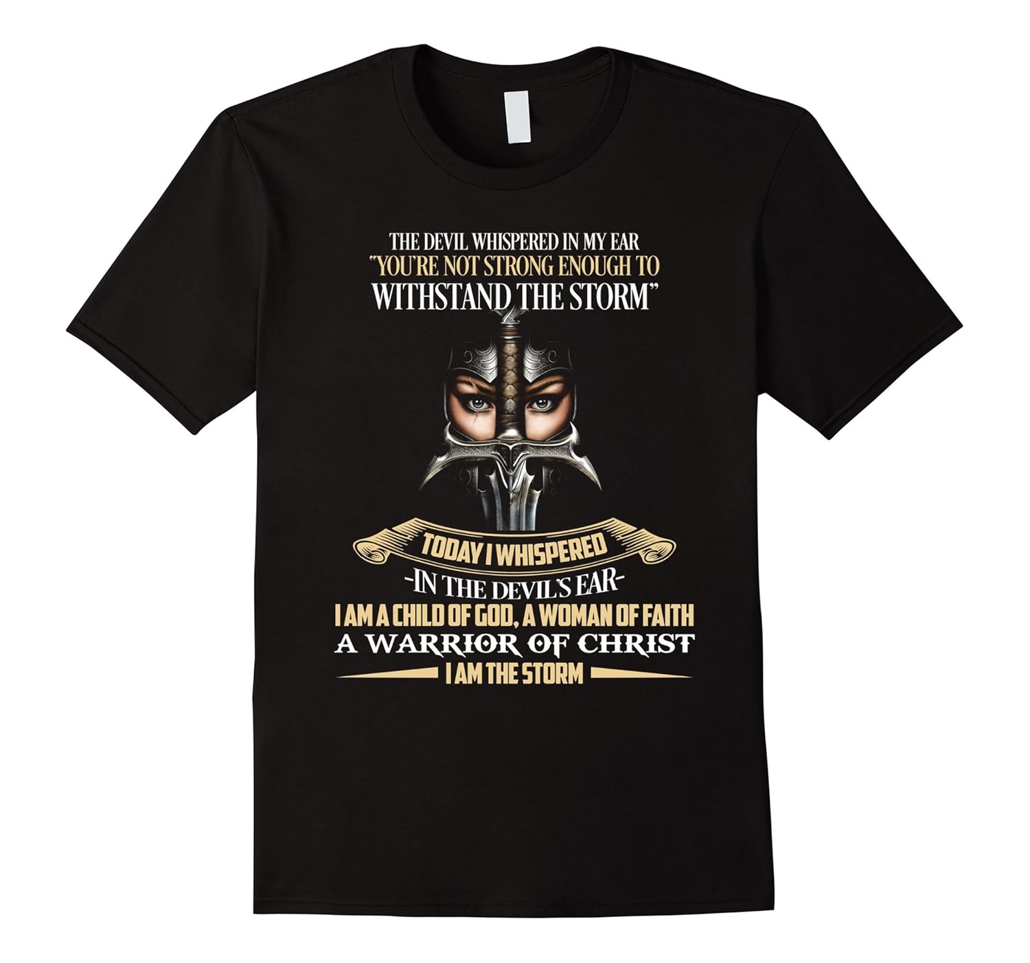 Solid colors: 100% Cotton; Heather Grey: 90% Cotton, 10% Polyester; All Other Heathers: 65% Cotton, 35% Polyester, Imported, Machine wash cold with like colors, dry low heat, The Devil Whispered In My Ear “You”re Not Strong Enough To Withstand The Storm” To Day Whispered In The Devil”s Ear “I Am A Child Of God A Woman Of Faith A Warrior Of Christ I Am The Storm”, Perfect T-Shirt for anyone who trust in God, Jesus, Christian, Lord. Christian gifts, Christian shirt, Lightweight, Classic fit, Double-needle sleeve and bottom hem