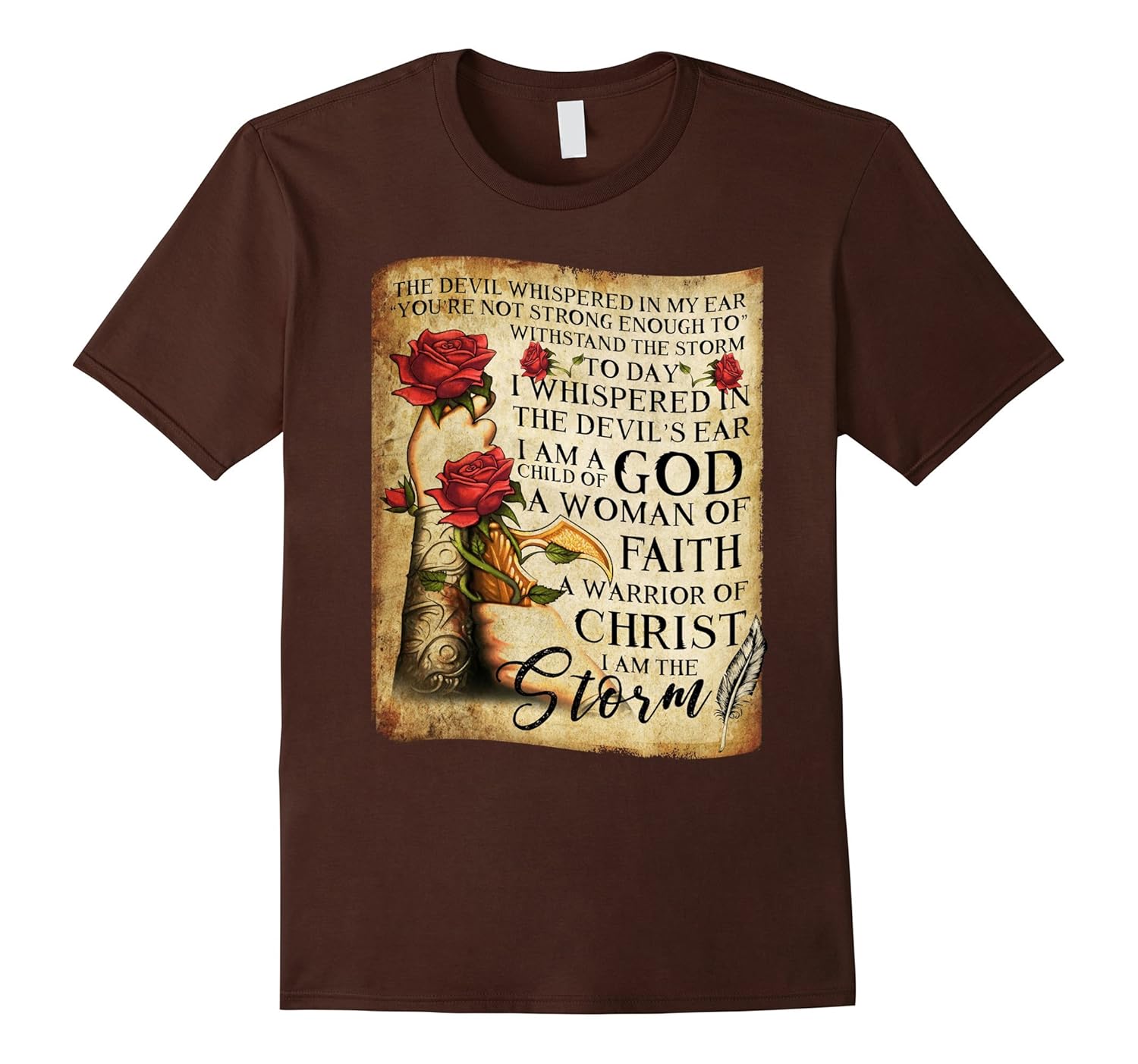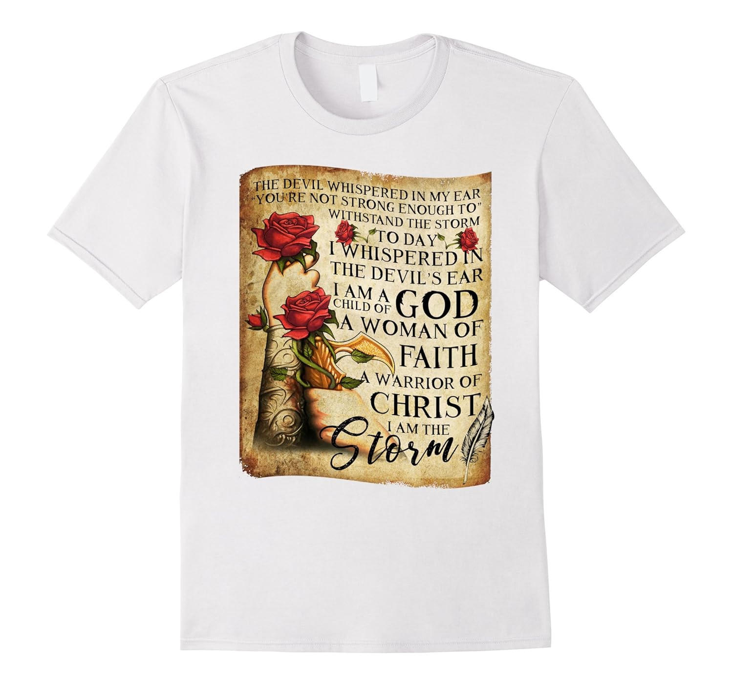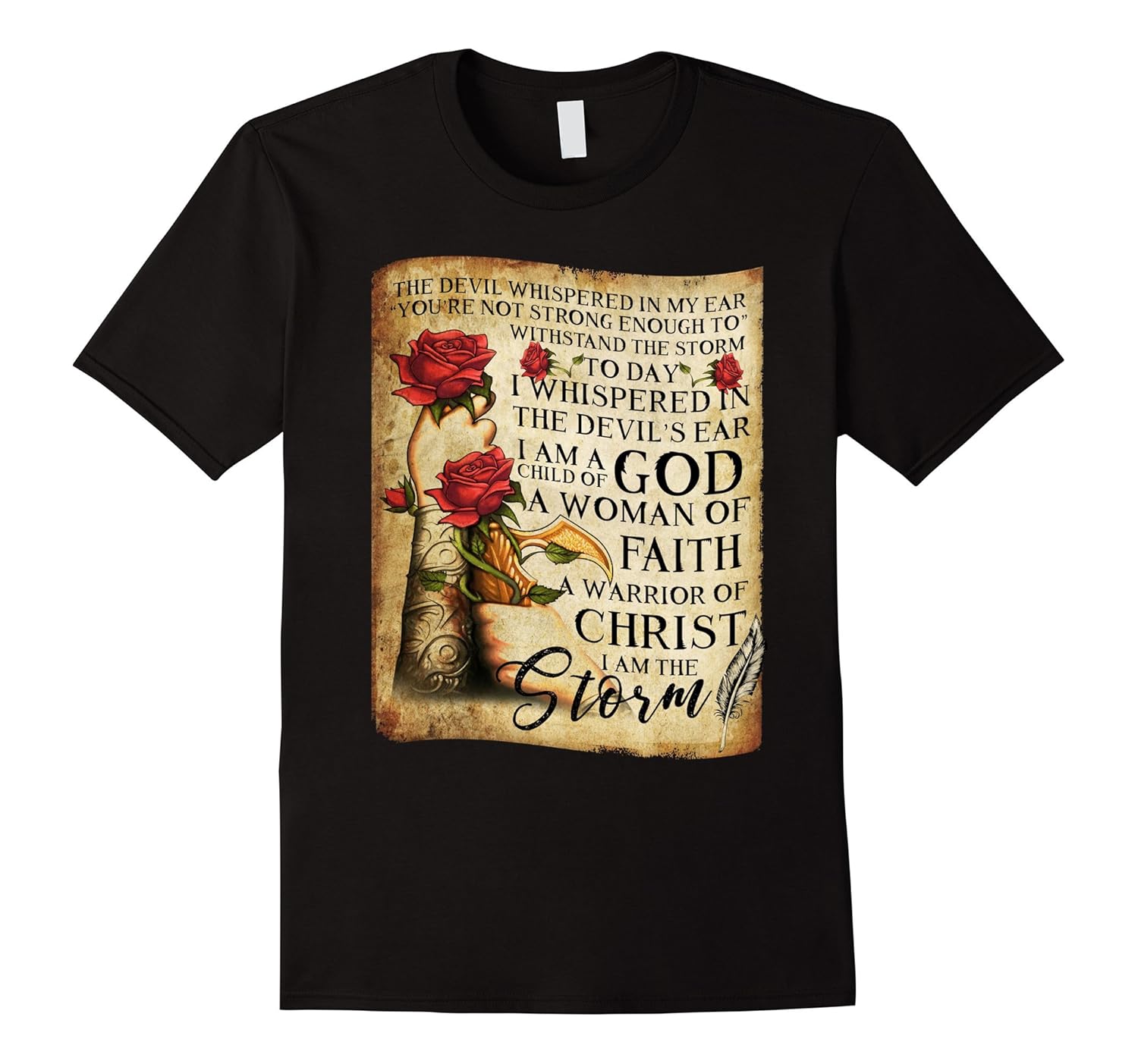 Solid colors: 100% Cotton; Heather Grey: 90% Cotton, 10% Polyester; All Other Heathers: 65% Cotton, 35% Polyester, Imported, Machine wash cold with like colors, dry low heat, The devil whispered in my ear “You”re not strong enough to withstand the storm”. Today I whispered in the devil”s ear I am a child of God a woman of faith a warrior of Christ I am the storm T-shirt. Lightweight, Classic fit, Double-needle sleeve and bottom hem