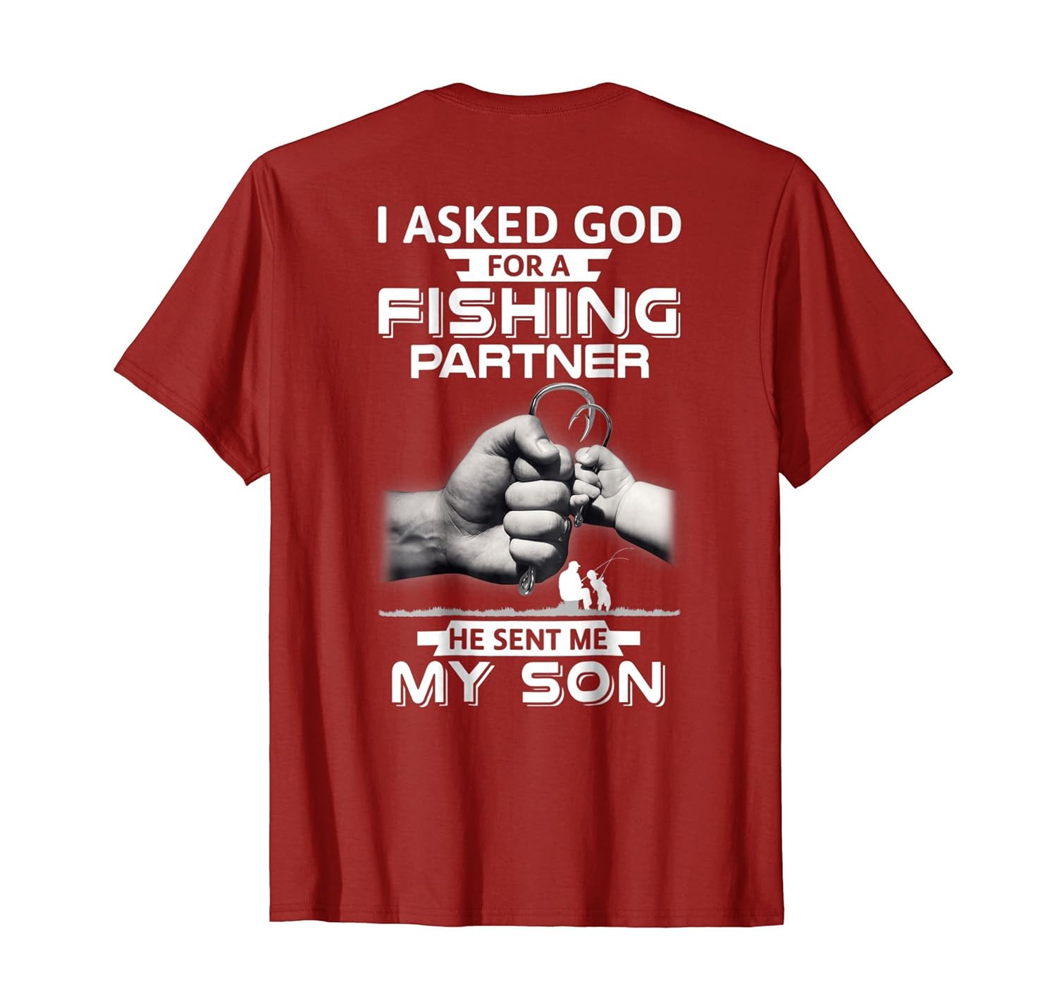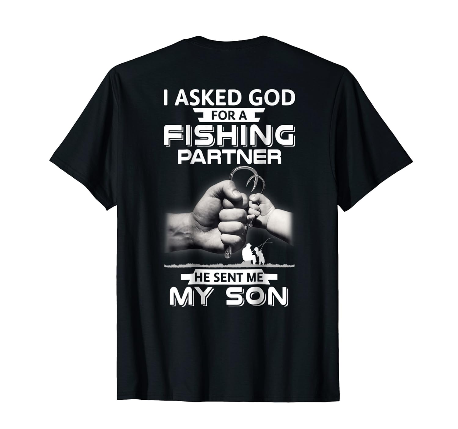 Solid colors: 100% Cotton; Heather Grey: 90% Cotton, 10% Polyester; All Other Heathers: 50% Cotton, 50% Polyester; Imported; Machine wash cold with like colors, dry low heat; I Asked God For A Fishing Partner He Sent Me My Son Shirt The Best Awesome Fishing Hobby Son Father Dad Daddy Family Fathers Day Tee T-Shirts Clothing For Mens Womens Funny Hight Quality Premium Perfect Gifts; Lightweight, Classic fit, Double-needle sleeve and bottom hem