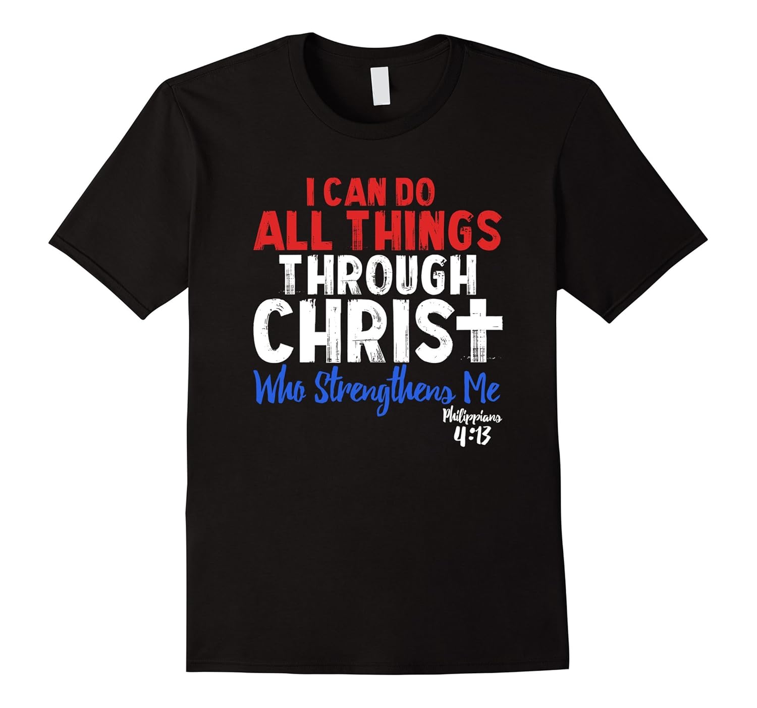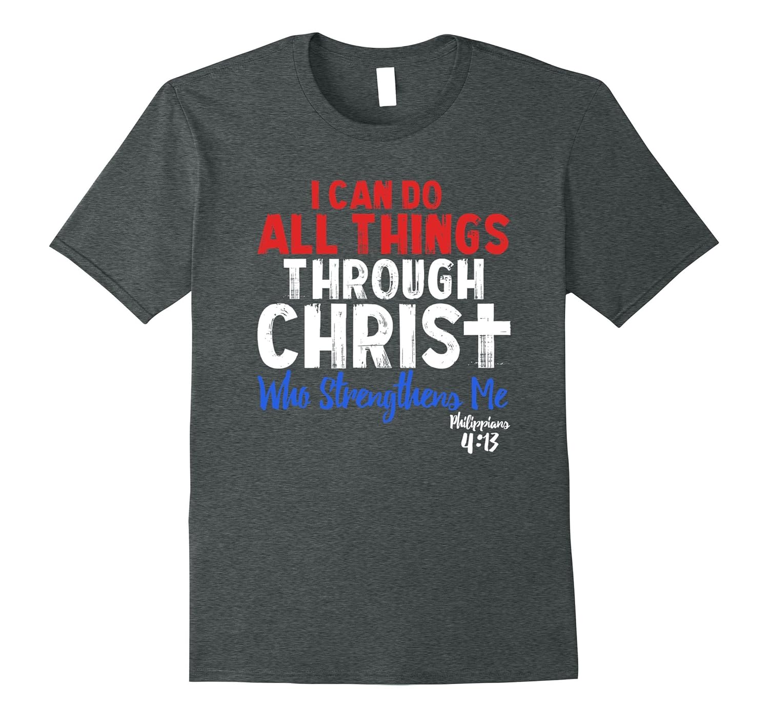 Solid colors: 100% Cotton; Heather Grey: 90% Cotton, 10% Polyester; All Other Heathers: 65% Cotton, 35% Polyester, Imported, Machine wash cold with like colors, dry low heat, Tee features bible verse 4:13 of Phillipians. We create Christian apparel for people with Christian values. Our shirts are perfect for church or church youth groups, bible study or everyday wear! Let the world know you love and follow Jesus!, Shirts make the best Christmas and Birthday gifts! Available in mens, ladies and youth sizes in multiple colors. Slim fit shirts, recommend buying a size for a looser fit. Lightweight, Classic fit, Double-needle sleeve and bottom hem