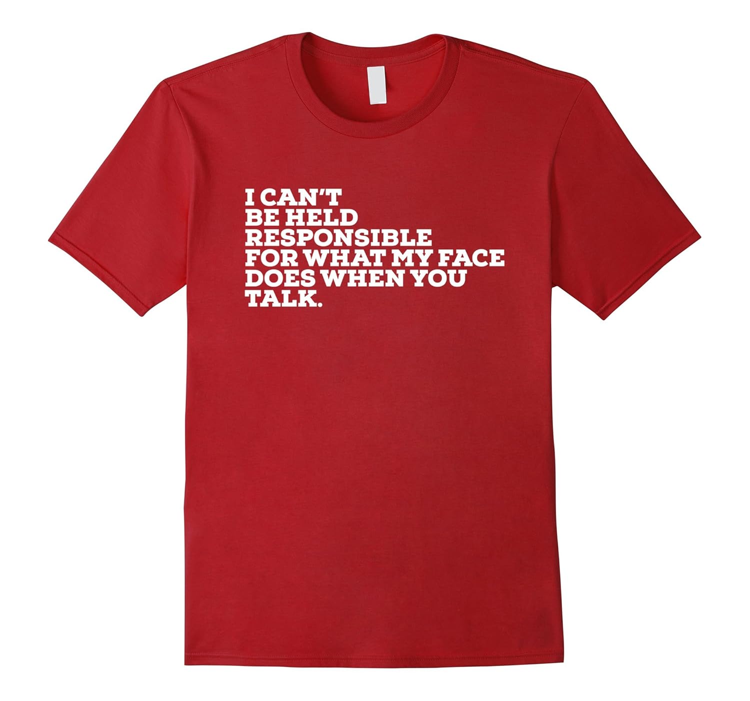Solid colors: 100% Cotton; Heather Grey: 90% Cotton, 10% Polyester; All Other Heathers: 65% Cotton, 35% Polyester, Imported, Machine wash cold with like colors, dry low heat, I Cant be Held Responsible For What My Face Does When You Talk Tee Shirt, I Cant be Held Responsible For What My Face Does When You Talk T Shirt, Lightweight, Classic fit, Double-needle sleeve and bottom hem