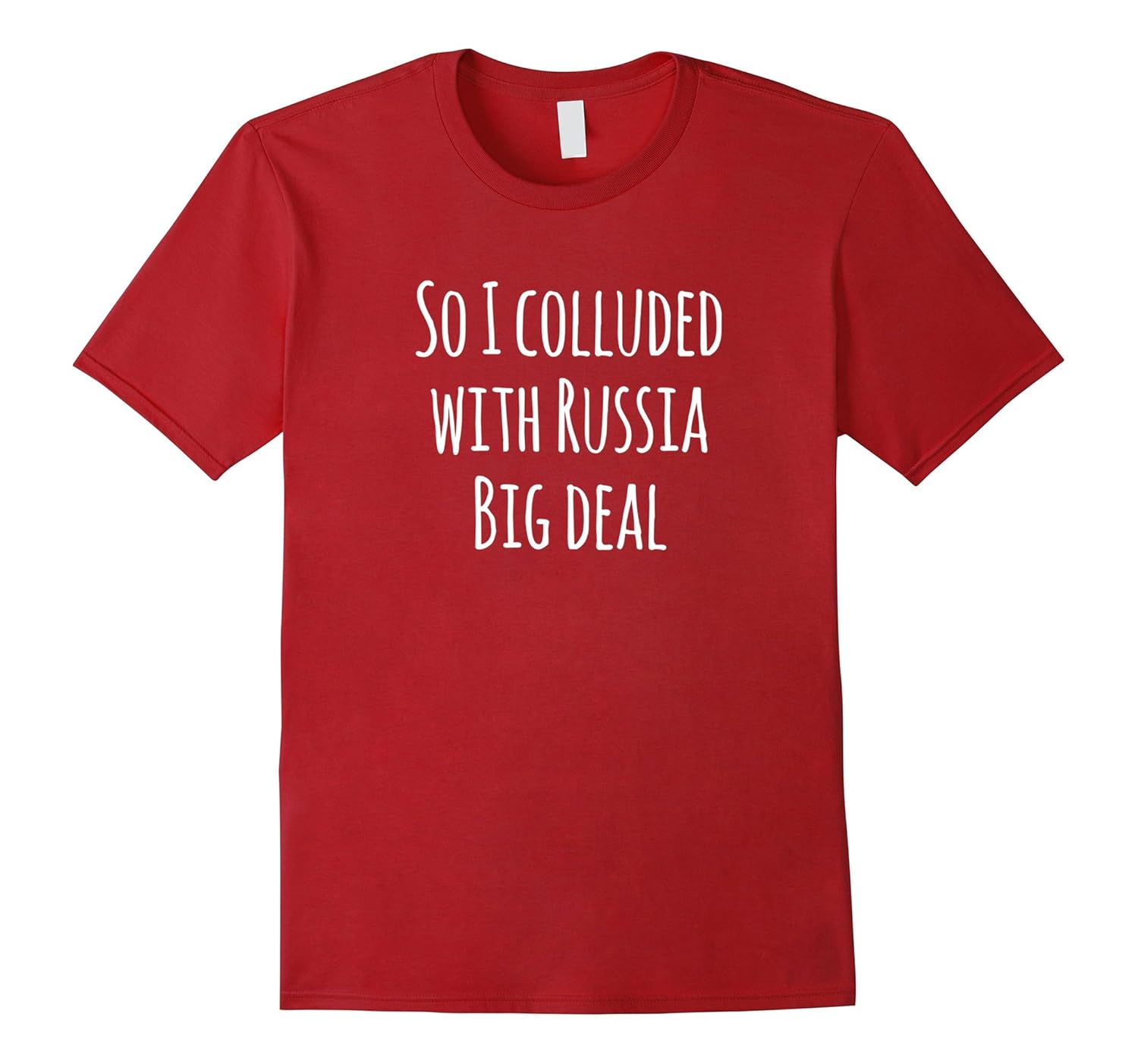 Solid colors: 100% Cotton; Heather Grey: 90% Cotton, 10% Polyester; All Other Heathers: 65% Cotton, 35% Polyester, Imported, Machine wash cold with like colors, dry low heat, So you colluded with Russia. Here”s a t-shirt to admit that. Shirt says “So I colluded with Russia big deal” and is funny and sarcastic! Get a laugh out of the latest controversy and wear this shirt!, Shirts are slightly fitted; consider sizing up for looser fit. Lightweight, Classic fit, Double-needle sleeve and bottom hem