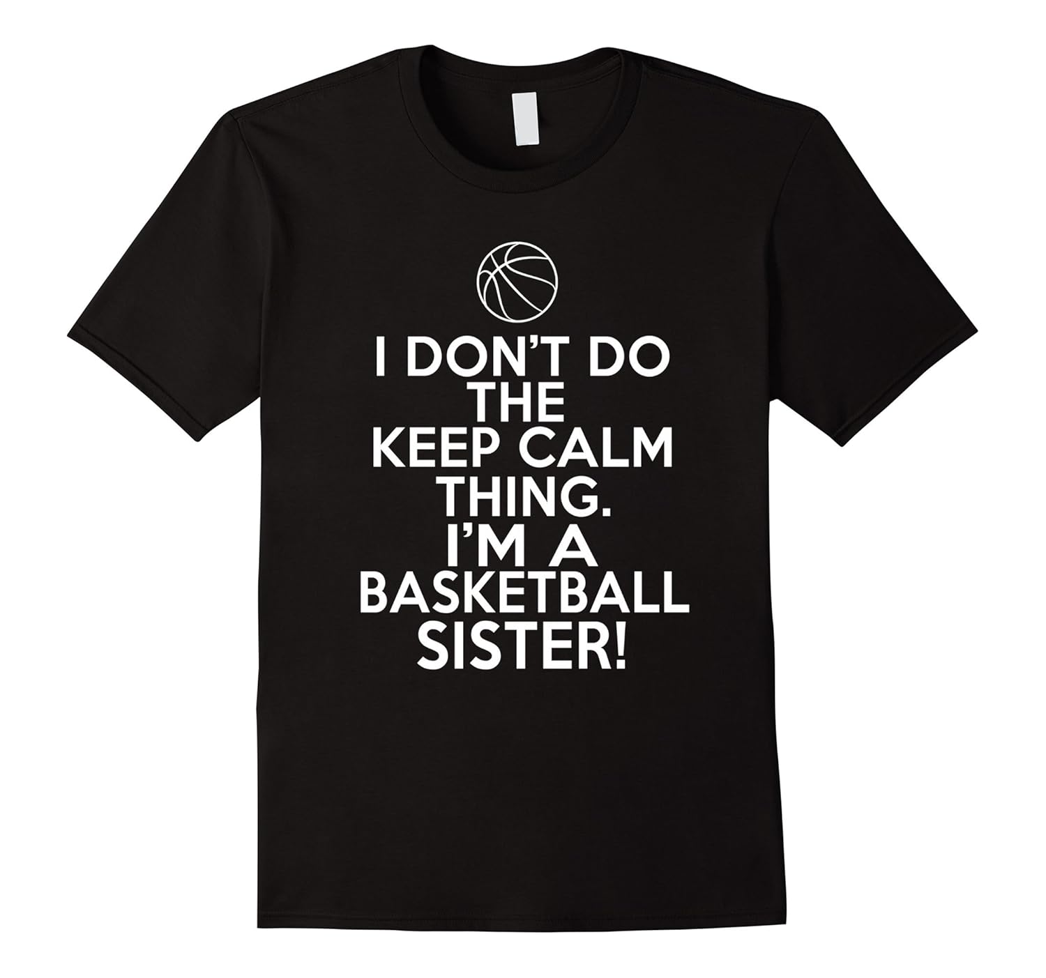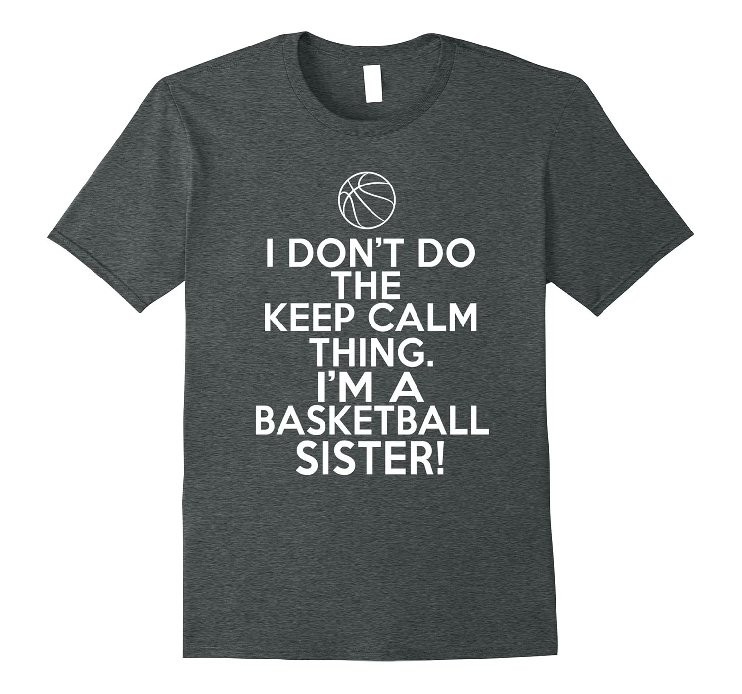 Solid colors: 100% Cotton; Heather Grey: 90% Cotton, 10% Polyester; All Other Heathers: 65% Cotton, 35% Polyester, Imported, Machine wash cold with like colors, dry low heat, Forget those Keep Calm Basketball Sister shirts you see everywhere. This funny basketball family shirt says, “I don”t do the keep calm thing. I”m a basketball sister.” It”s the perfect funny shirt for basketball sisters to wear to their siblings games. Great birthday, end of season or Christmas gift for basketball sisters. Let the basketball sister in your life know you care!, Lightweight, Classic fit, Double-needle sleeve and bottom hem