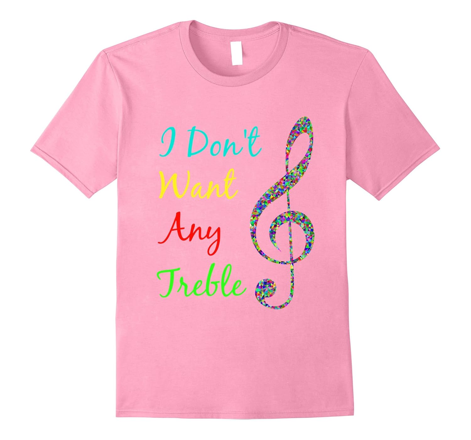Solid colors: 100% Cotton; Heather Grey: 90% Cotton, 10% Polyester; All Other Heathers: 65% Cotton, 35% Polyester, Imported, Machine wash cold with like colors, dry low heat, Perfect shirt for any musician, music teacher, singer, songwriter, band member or DJ!, This funny musical pun shirt is the perfect mix of sassy and cute! Warna everyone that you don”t want any treble!, Lightweight, Classic fit, Double-needle sleeve and bottom hem