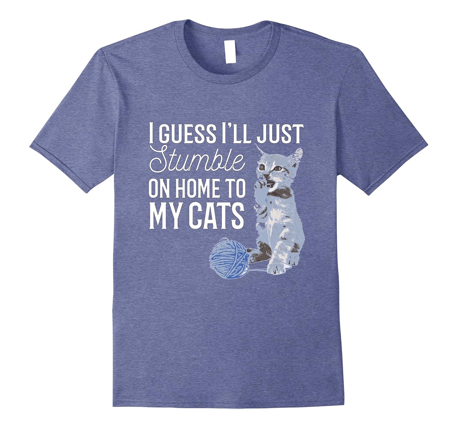 Solid colors: 100% Cotton; Heather Grey: 90% Cotton, 10% Polyester; All Other Heathers: 65% Cotton, 35% Polyester, Imported, Machine wash cold with like colors, dry low heat, Ever caught yourself out and decide to stumble home to your cats. This is a funny cat mom or cat dad tee shirt for anyone that would rather be home with their kittens. This funny cat owner tee shirt has a graphic image of a cute cat playing with yard along with text saying I Guess I”ll Just Stumble On Home to My Cats with stumble written in script letters. Lightweight, Classic fit, Double-needle sleeve and bottom hem