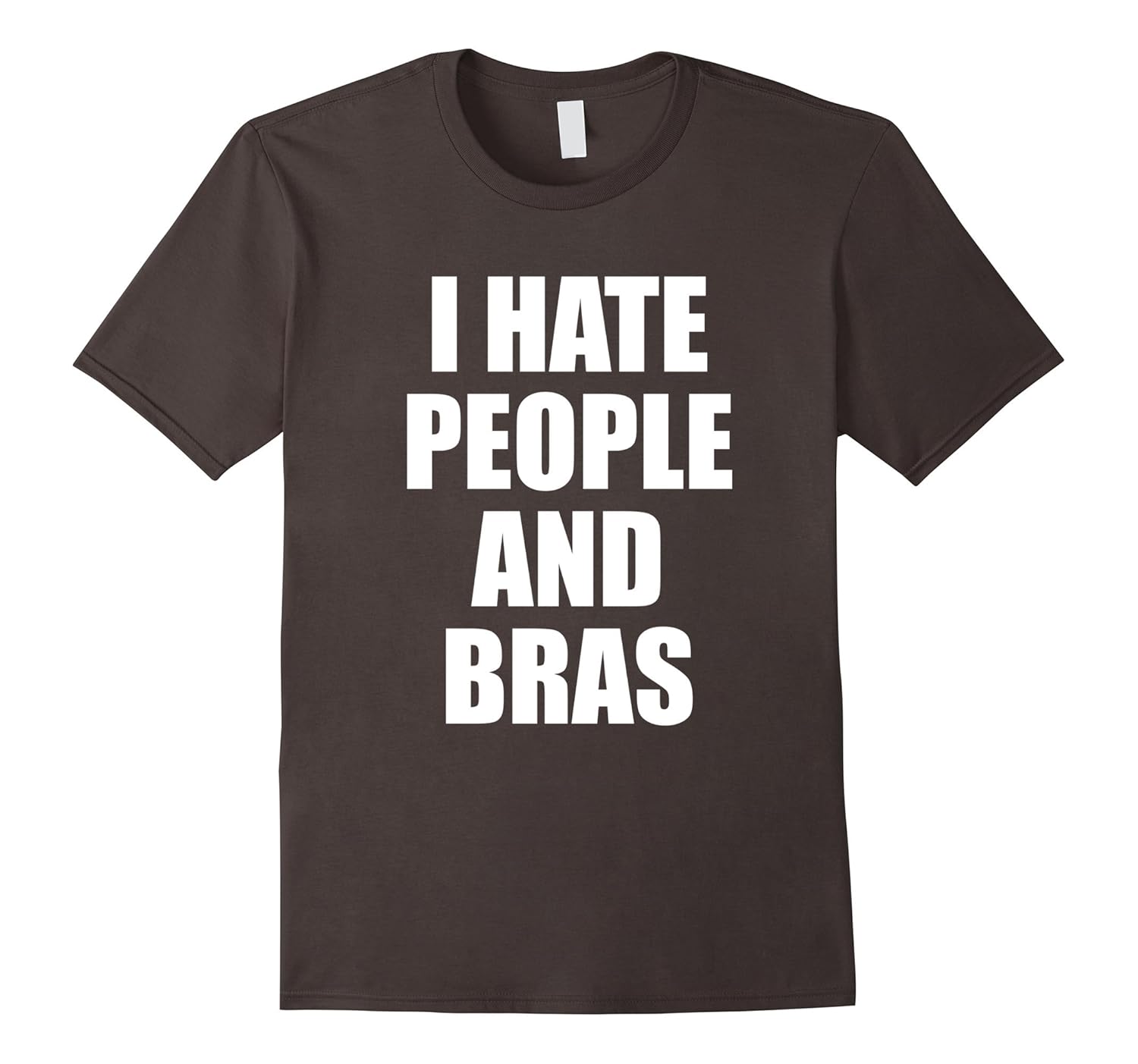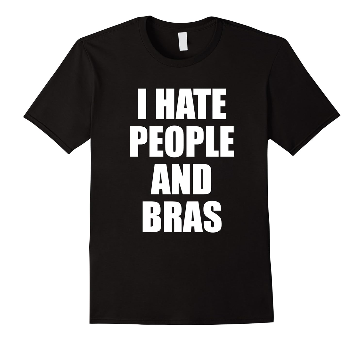Solid colors: 100% Cotton; Heather Grey: 90% Cotton, 10% Polyester; All Other Heathers: 65% Cotton, 35% Polyester, Imported, Machine wash cold with like colors, dry low heat, Funny Tee with print I hate people and bras T-Shirts. For a more loose fit, please order a size up. Great Sarcastic Tee with print. Complete collection of funny quote party accessories for him / her (bandana, flag, bow tie, bracelet, bucket hat, decorations, tank top, short sleeve, earrings, pants, socks, beer coffee mug, sticker, pin) with this Shirt, Lightweight, Classic fit, Double-needle sleeve and bottom hem