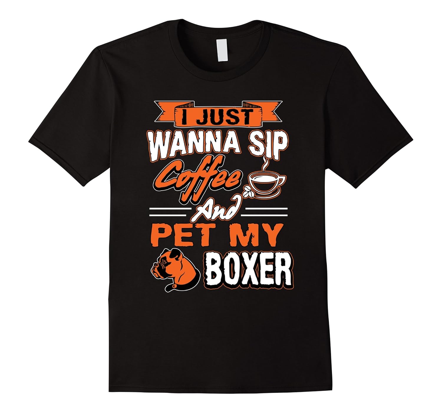 I just wanna sip coffee and pet my boxer funny dog t-shirt-ANZ