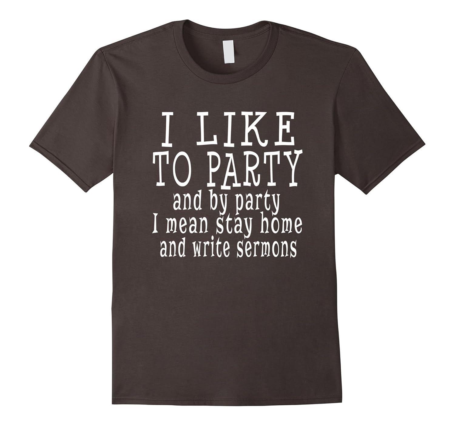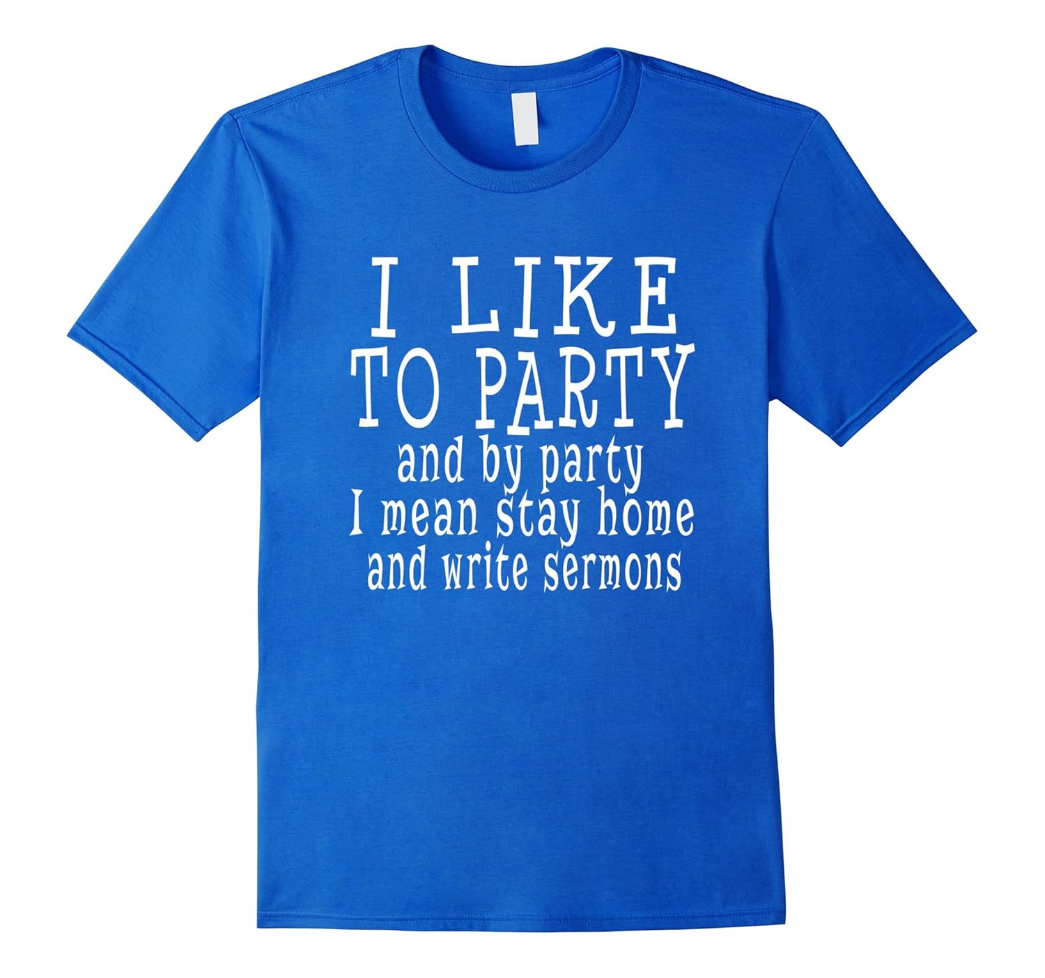 Solid colors: 100% Cotton; Heather Grey: 90% Cotton, 10% Polyester; All Other Heathers: 65% Cotton, 35% Polyester, Imported, Machine wash cold with like colors, dry low heat, This is the perfect t-shirt for any pastor, reverend, woman pastor, preacher, clergy, clergyman, a love for teaching the bible and scripture to a congregation to kids or to adults. Graphic t-shirt. Great pastor”s appreciation present gift idea. Featuring a fun whimsical font in caps letters that reads I like to party, and by party I mean stay home and write sermons, this tee shirt is a fun, funny, humor, humorous, sarcastic, option for to preach, to work on the weekend at the church, or simply fo, Lightweight, Classic fit, Double-needle sleeve and bottom hem