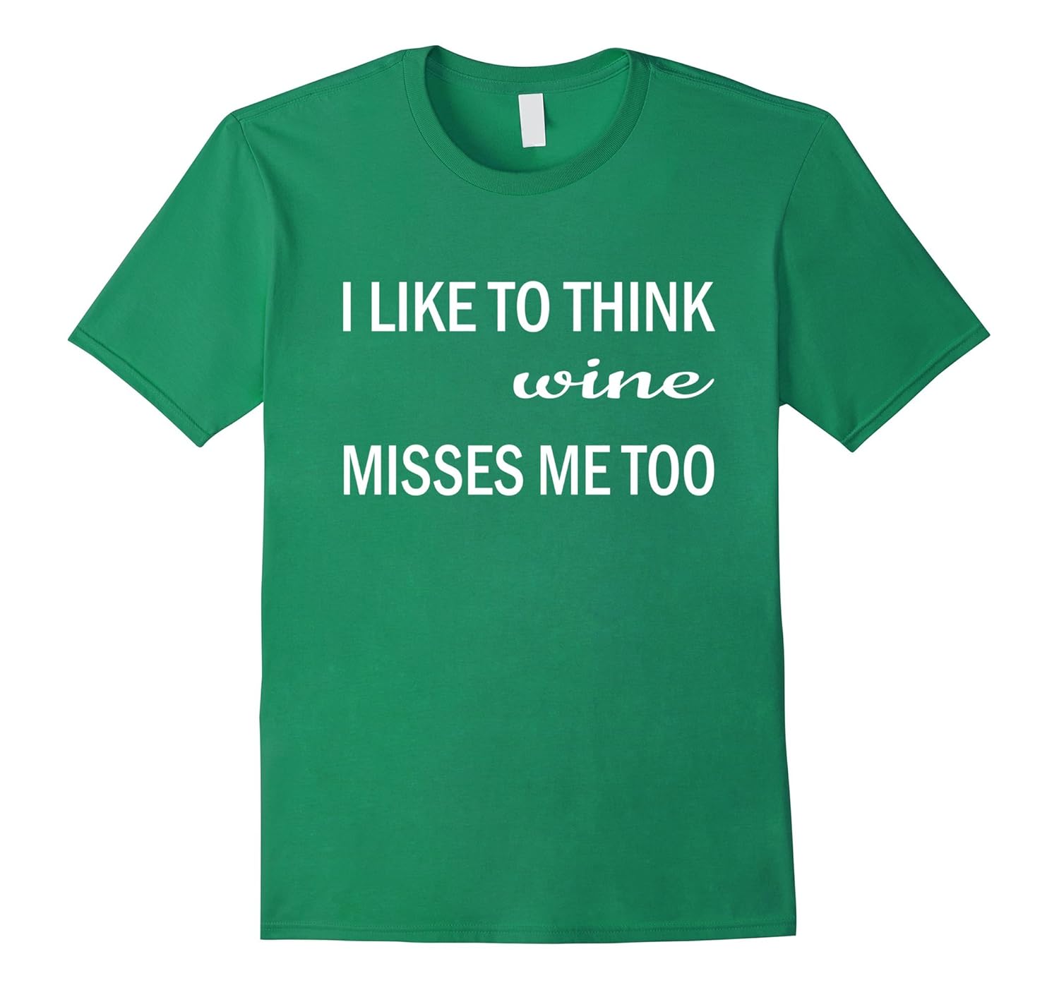 Solid colors: 100% Cotton; Heather Grey: 90% Cotton, 10% Polyester; All Other Heathers: 65% Cotton, 35% Polyester, Imported, Machine wash cold with like colors, dry low heat, I like to think wine misses me too T-shirt, Lightweight, Classic fit, Double-needle sleeve and bottom hem