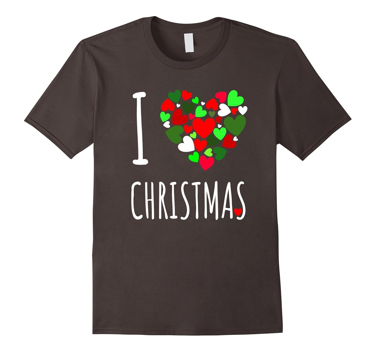 Solid colors: 100% Cotton; Heather Grey: 90% Cotton, 10% Polyester; All Other Heathers: 65% Cotton, 35% Polyester; Imported; Machine wash cold with like colors, dry low heat; I Love Christmas Shirt with heart design graphic. Christmas and the Holiday Season is a magical time of year. Do you love the Holidays? Christmas shopping wrapping presents under the Christmas tree visiting with family and partying with friends?; A perfect shirt to wear throughout the Holidays. This tee lets everyone know how you feel about this wonderful time of year. Wear it to church on Christmas Eve Christmas morning Work Holiday parties or anytime. Great for Kids Teenagers and Adults.; Lightweight, Classic fit, Double-needle sleeve and bottom hem