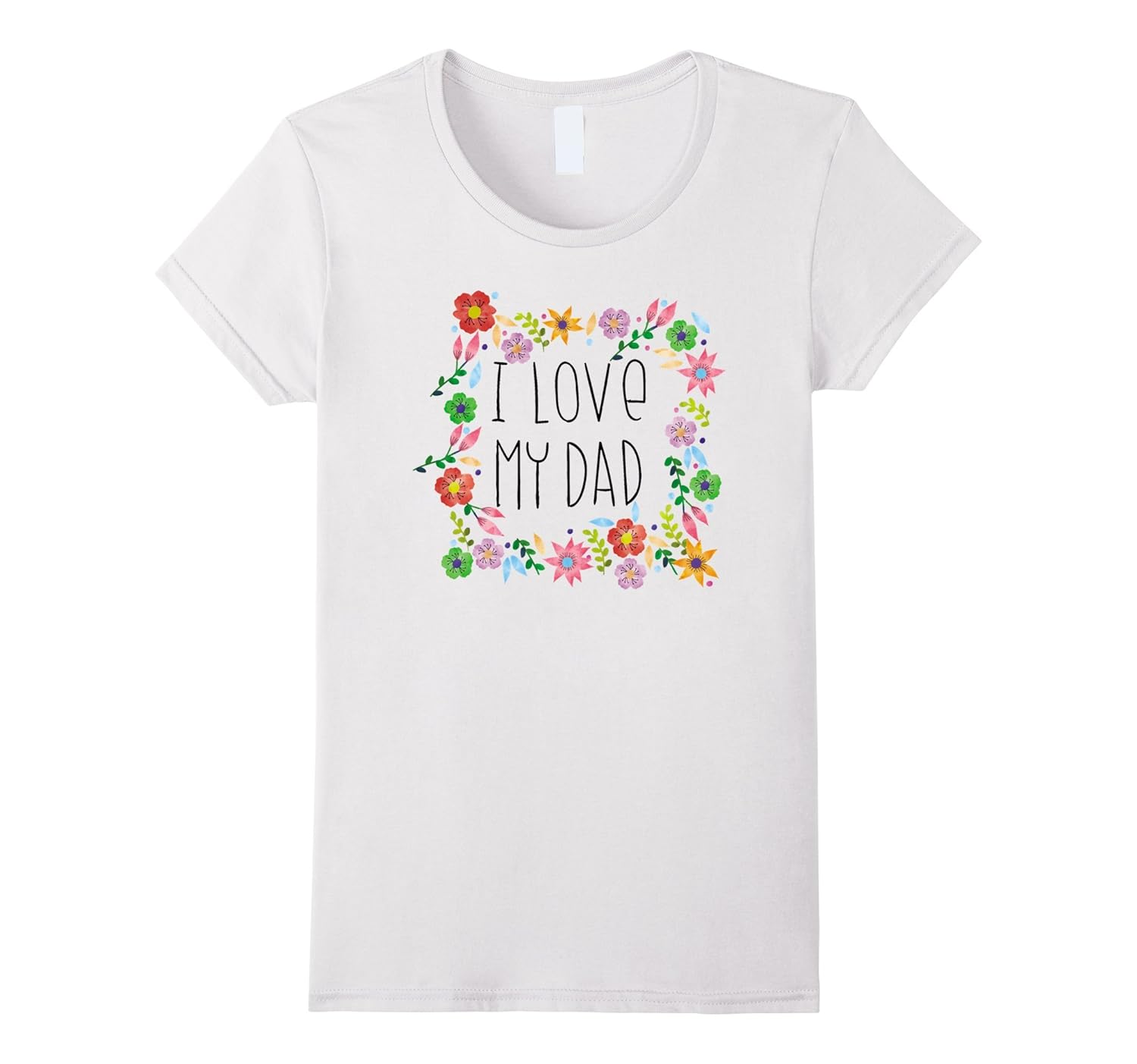 Solid colors: 100% Cotton; Heather Grey: 90% Cotton, 10% Polyester; All Other Heathers: 50% Cotton, 50% Polyester; Imported; Machine wash cold with like colors, dry low heat; If you have a lovely Dad and want to show him your love get this sweet Daddy love Shirt. Perfect for girls and women who are also daughters and want to celebrate their Dad. Love Dad Shirt for daughters.; Featuring a beautiful flowers frame and I love my Dad text. Awesome gift for daughter granddaughter or any girl who loves her Dad. Wear it on Fathers Day or any day you want to honor your daddy! Love my Dad shirt; Lightweight, Classic fit, Double-needle sleeve and bottom hem