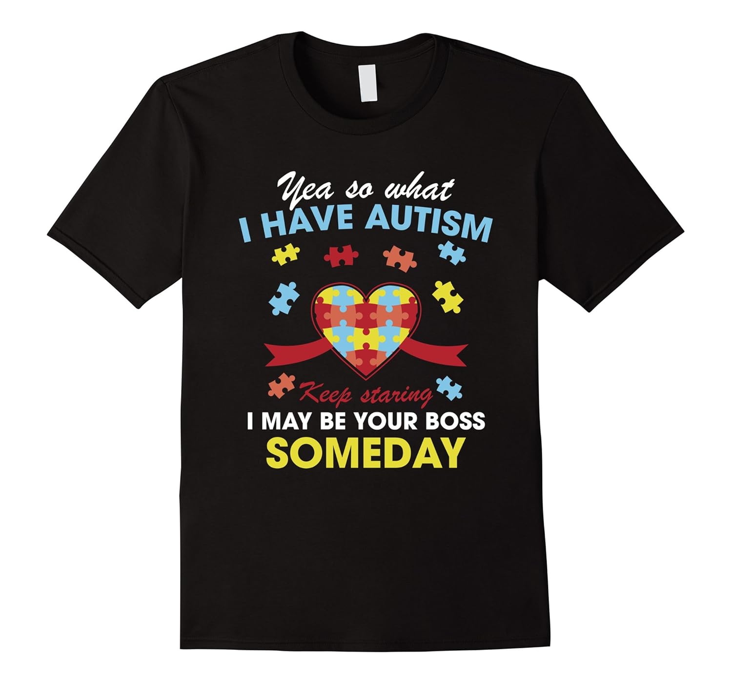 Solid colors: 100% Cotton; Heather Grey: 90% Cotton, 10% Polyester; All Other Heathers: 65% Cotton, 35% Polyester, Imported, Machine wash cold with like colors, dry low heat, autism pride t shirt, autism awareness t shirt, love autism t shirt, ribbon, puzzle, autism boss t shirt, autism motivational t shirt, autistic motivation t shirt, Yea So What I Have Autism Keep Staring I May Be Your Boss Someday. Be proud of your hero with autism in Autism Awareness Month and World Autism Awareness Day. Lightweight, Classic fit, Double-needle sleeve and bottom hem