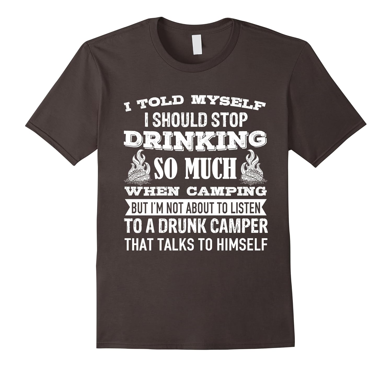 Solid colors: 100% Cotton; Heather Grey: 90% Cotton, 10% Polyester; All Other Heathers: 65% Cotton, 35% Polyester, Imported, Machine wash cold with like colors, dry low heat, I Told Myself I Should Stop Drinking So Much When Camping, But I”m Not About To Listen To A Drunk Camper That Talks To Himself, Lightweight, Classic fit, Double-needle sleeve and bottom hem