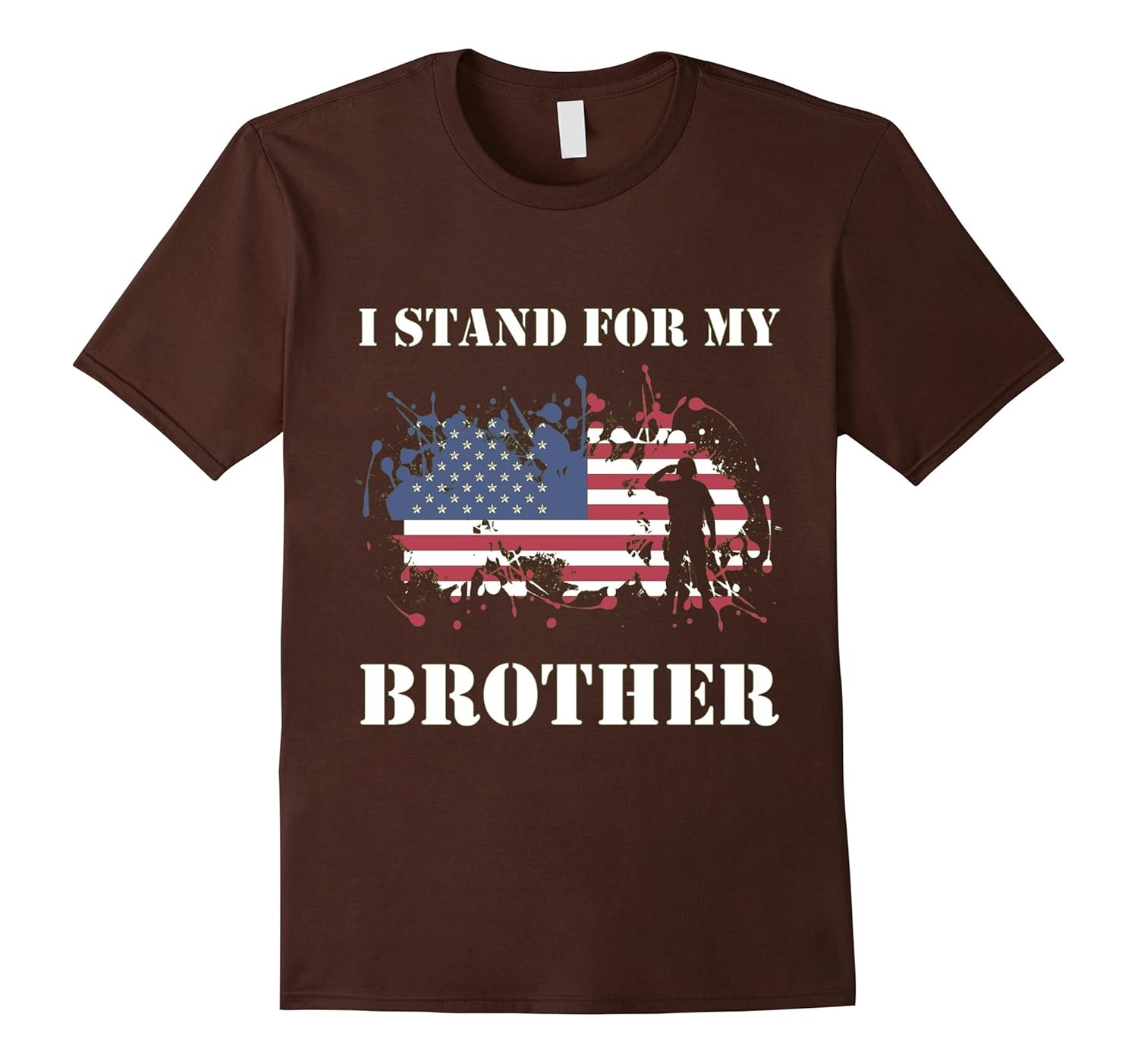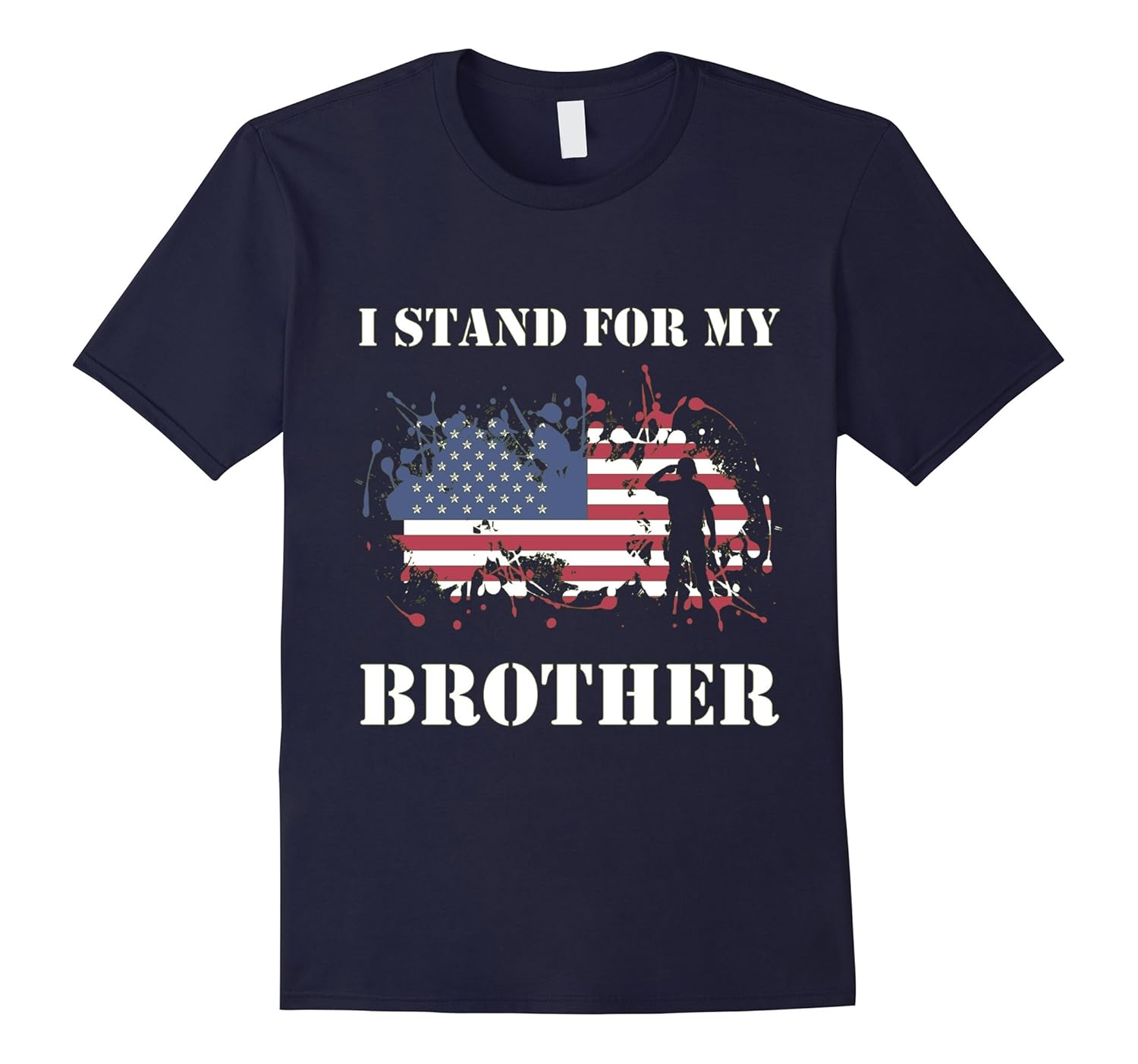 Solid colors: 100% Cotton; Heather Grey: 90% Cotton, 10% Polyester; All Other Heathers: 65% Cotton, 35% Polyester, Imported, Machine wash cold with like colors, dry low heat, Show your love for your Brother with this patriotic tshirt. This tee combines a painted style United States flag with a silhouette of a soldier saluting in front. I Stand For My Brother makes a great statement of support for your Brother and your country. Makes a great t-shirt to wear for Veteran”s Day, Memorial Day, Independence Day, and more. Lightweight, Classic fit, Double-needle sleeve and bottom hem