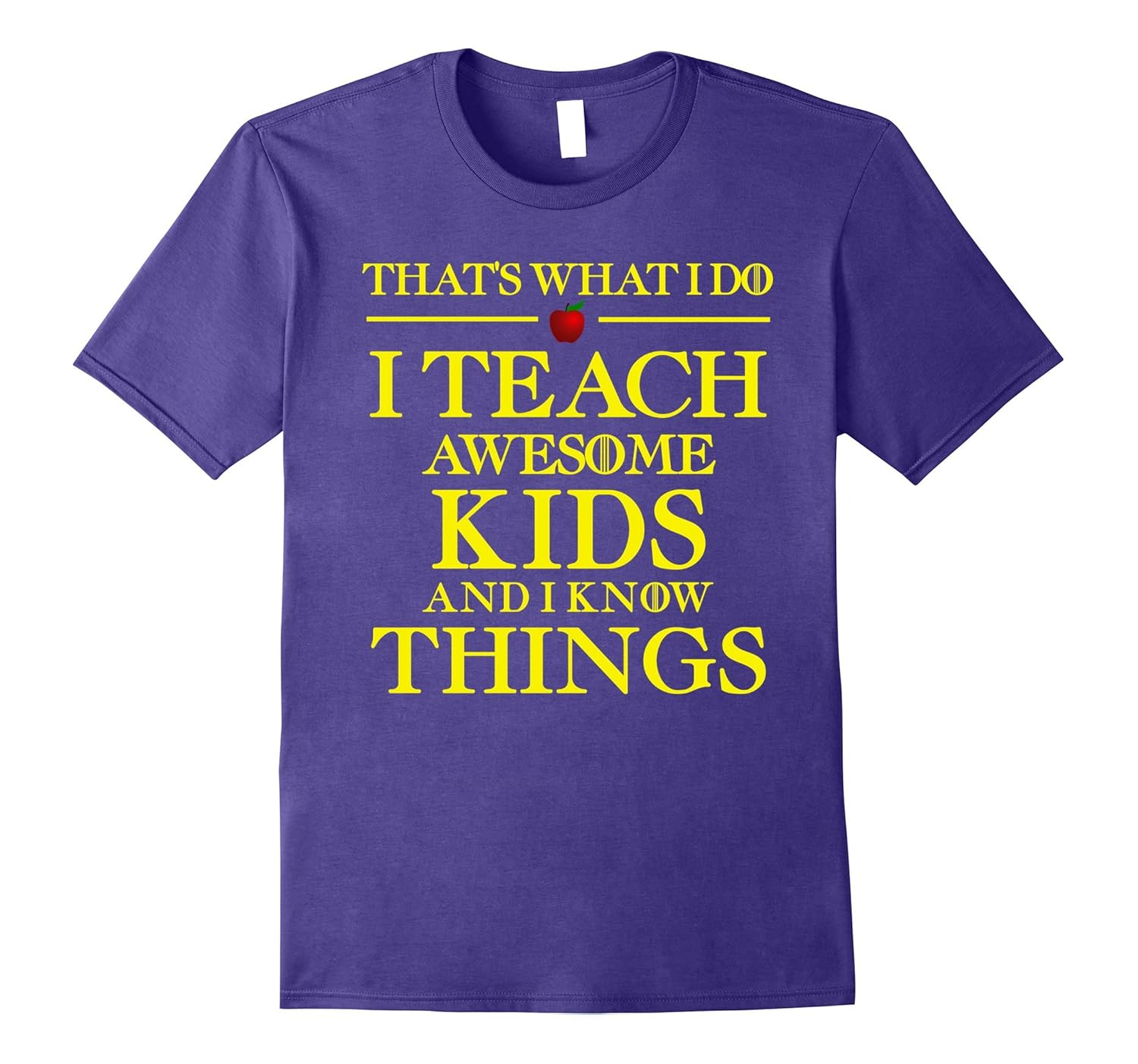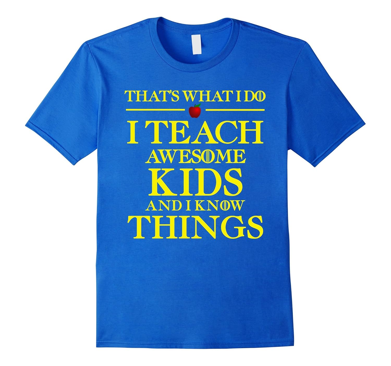 Solid colors: 100% Cotton; Heather Grey: 90% Cotton, 10% Polyester; All Other Heathers: 65% Cotton, 35% Polyester, Imported, Machine wash cold with like colors, dry low heat, THAT”S WHAT I DO, I TEACH AWESOME KIDS AND I KNOW THINGS Teacher T-Shirt. The best teacher gift present a student can give to her teacher. Buy one for the educator in your family be is mom, dad, brother, sister, son, daughter, husband or wife. Great tee shirt for elementary grade school teacher preschool, public, private or charter. They can wear to school party, birthday, casual Friday, Halloween party, teacher appreciation week. 1st, 2nd, 3rd, 4th, 5th, 6th, 7th, 8th, 9th, 10th, 11th grade. Lightweight, Classic fit, Double-needle sleeve and bottom hem