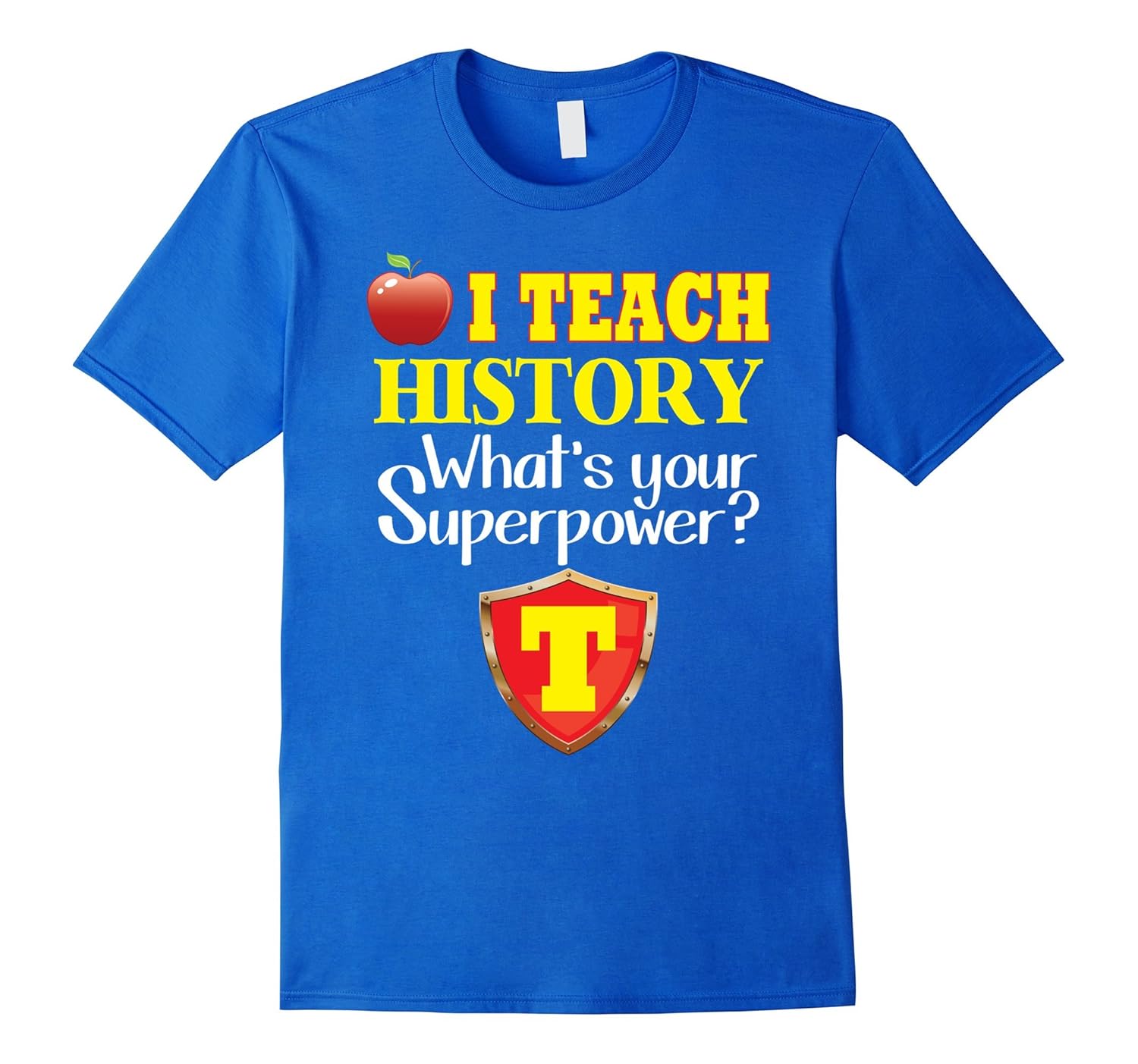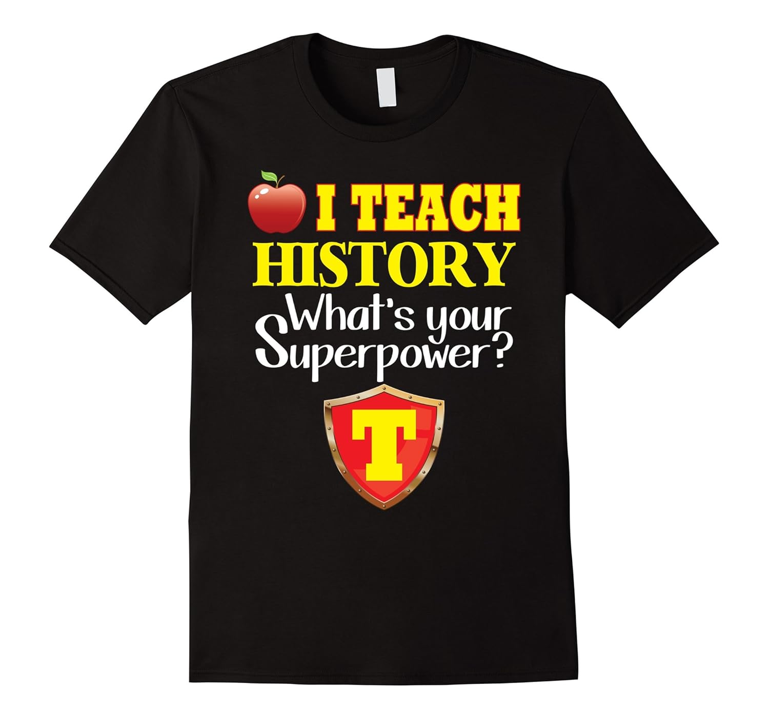 Solid colors: 100% Cotton; Heather Grey: 90% Cotton, 10% Polyester; All Other Heathers: 65% Cotton, 35% Polyester; Imported; Machine wash cold with like colors, dry low heat; I teach History Whats your superpower T-Shirt, Teacher, for a Happy Teachers Day, T Shirt for Teachers Andamp; Students, a lovely T Shirt for Teacher Andamp; Student for Teachers and Students, for First Day of School; A lovely T-Shirt for Teacher, Teachers Day. This is a perfect gift for your beloved teacher for Back to School Day.; Lightweight, Classic fit, Double-needle sleeve and bottom hem
