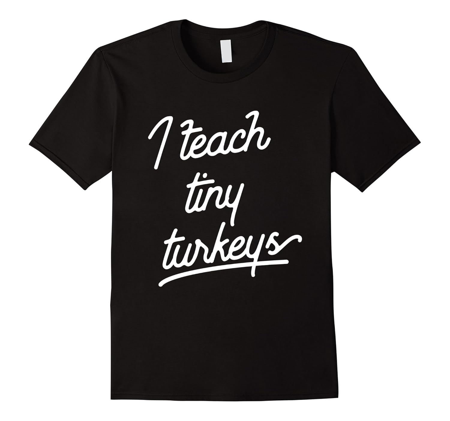 Solid colors: 100% Cotton; Heather Grey: 90% Cotton, 10% Polyester; All Other Heathers: 65% Cotton, 35% Polyester, Imported, Machine wash cold with like colors, dry low heat, i teach tiny turkeys thanksgiving day fall season family holiday dinner party autumn teacher teaching school, quote textual saying cool gift ideas joke funny humor sarcastic, Lightweight, Classic fit, Double-needle sleeve and bottom hem