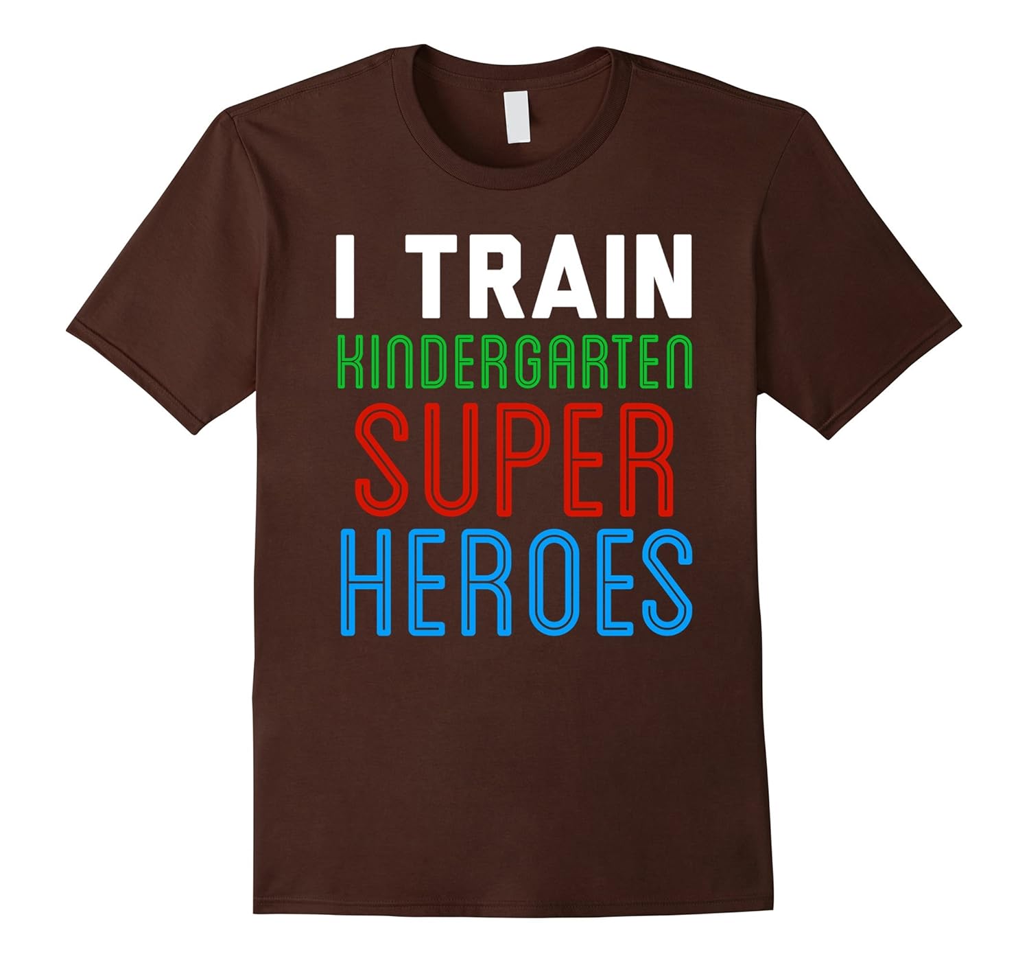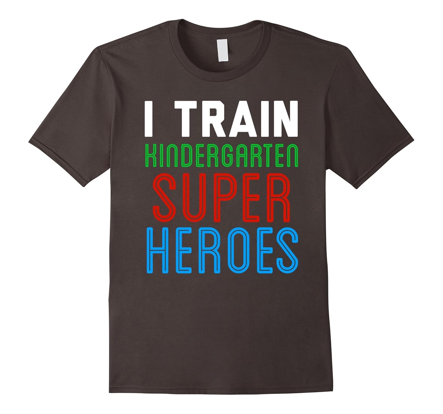 Solid colors: 100% Cotton; Heather Grey: 90% Cotton, 10% Polyester; All Other Heathers: 65% Cotton, 35% Polyester; Imported; Machine wash cold with like colors, dry low heat; I Train Kindergarten Superheroes Shirt.; Lightweight, Classic fit, Double-needle sleeve and bottom hem