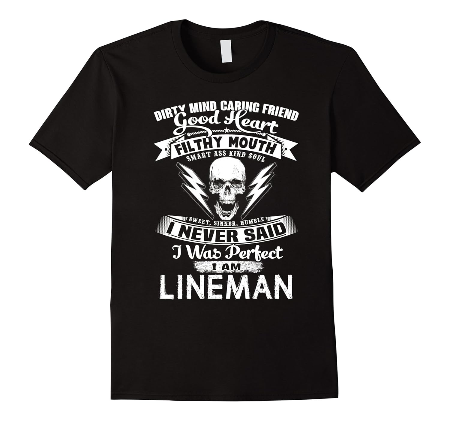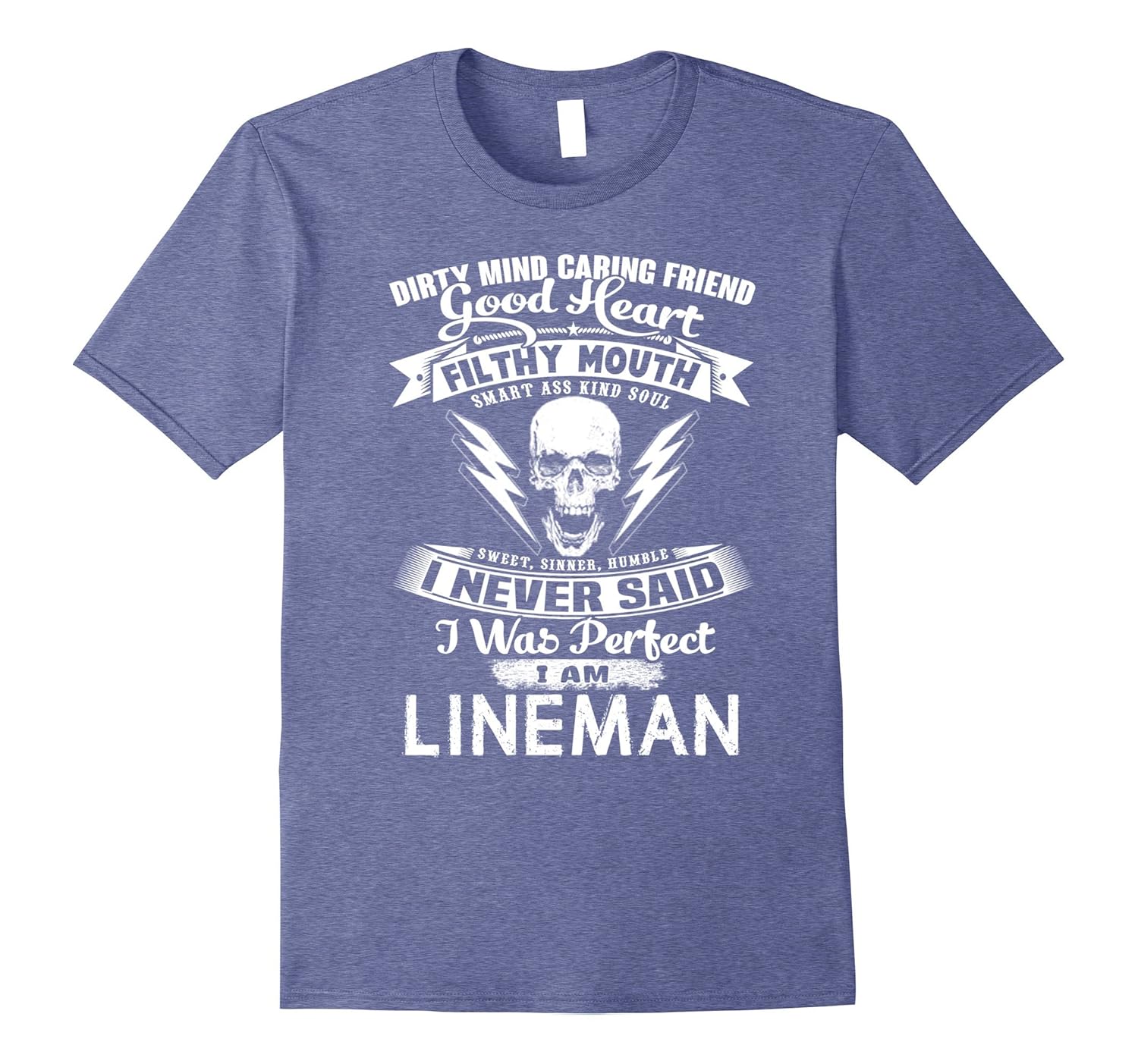 Solid colors: 100% Cotton; Heather Grey: 90% Cotton, 10% Polyester; All Other Heathers: 65% Cotton, 35% Polyester, Imported, Machine wash cold with like colors, dry low heat, I was perfect iam Lineman shirt, lineman, Lightweight, Classic fit, Double-needle sleeve and bottom hem