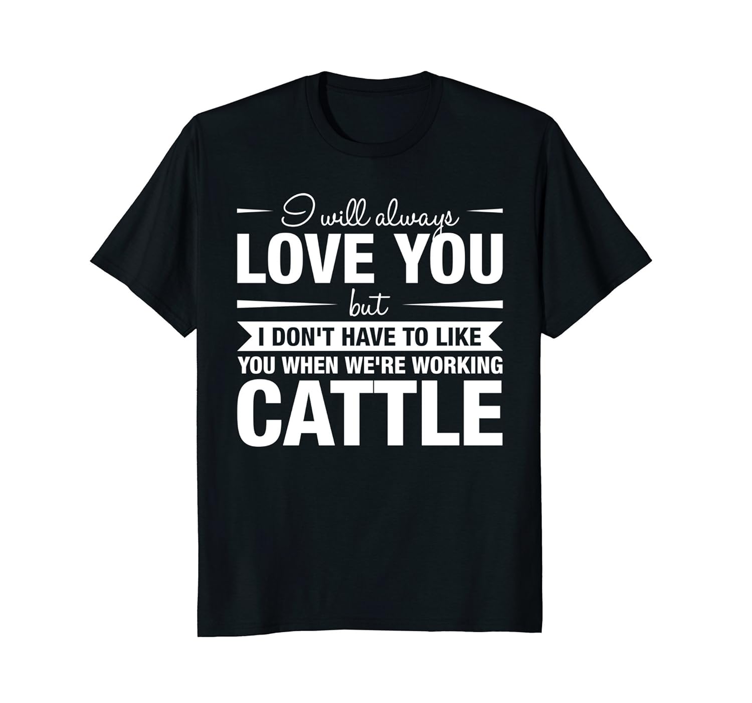 Solid colors: 100% Cotton; Heather Grey: 90% Cotton, 10% Polyester; All Other Heathers: 50% Cotton, 50% Polyester; Imported; Machine wash cold with like colors, dry low heat; I Will Always Love You But I Dont Have To Like You When Were Working Cattle T-shirt. Sorry For What I Said When We Were Working Cattle T-shirt. Funny quotes tee. Funny Farm shirt. Farmer T-Shirt.; Perfect gift for animal husbandry, stock farmer, stock breeder, arboriculturist, livestock, farmed ruminants, intensive animal farming. Fun sarcastic shirt. For a looser fit, please order a size up.; Lightweight, Classic fit, Double-needle sleeve and bottom hem