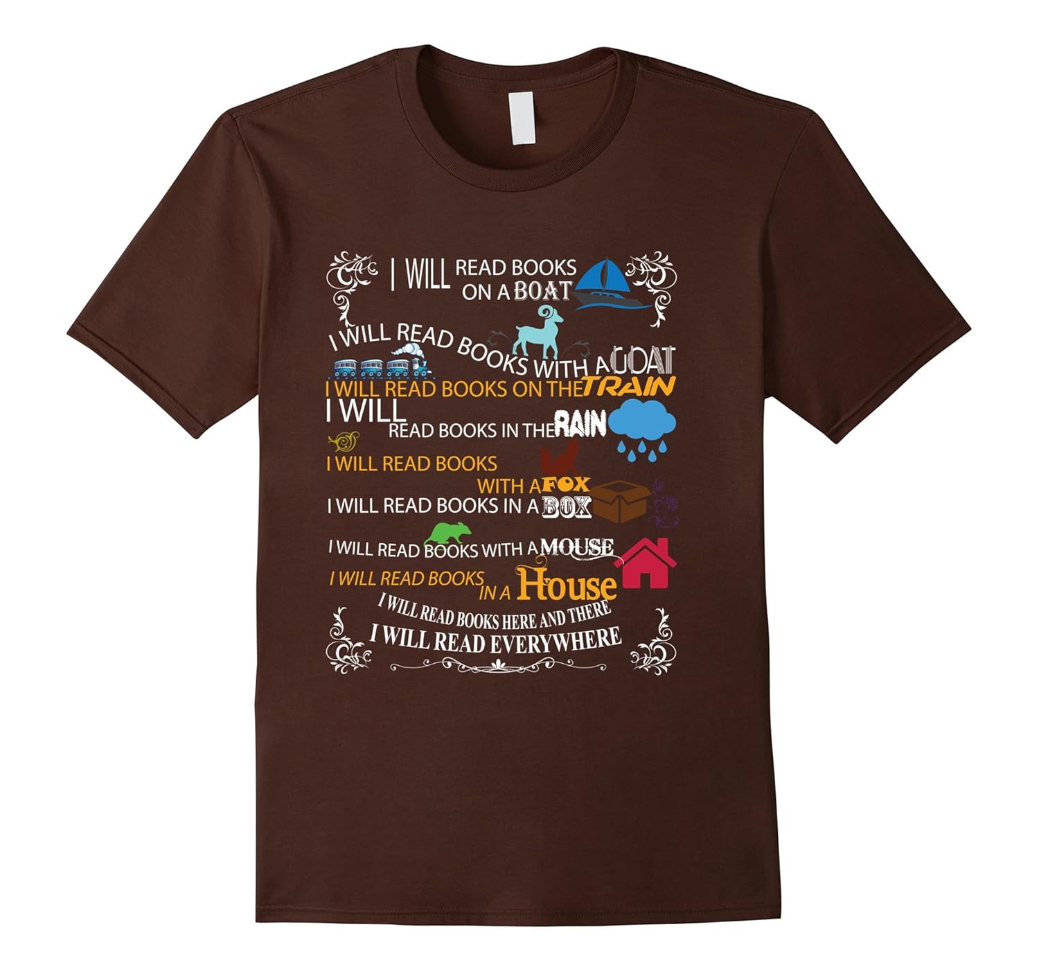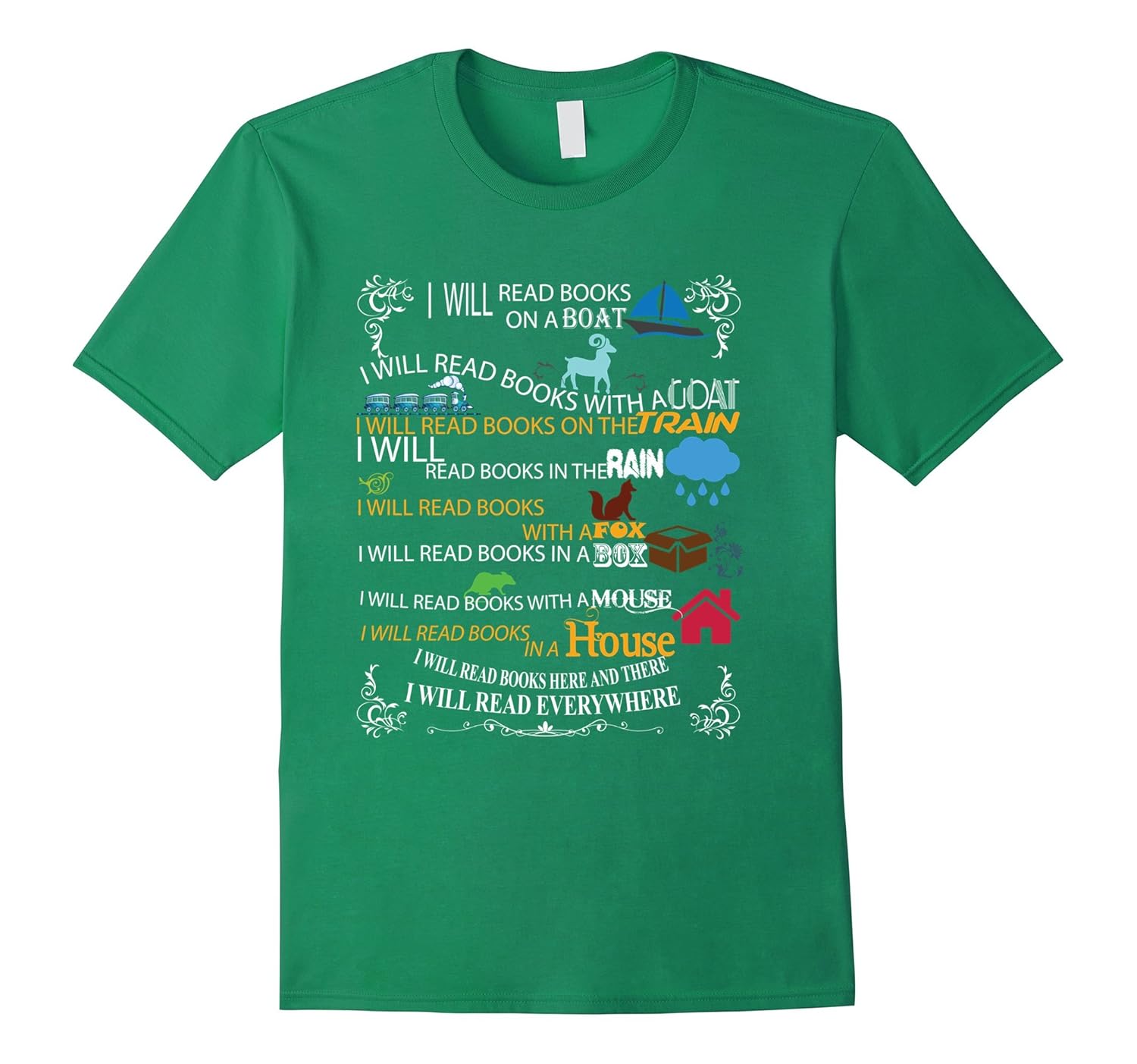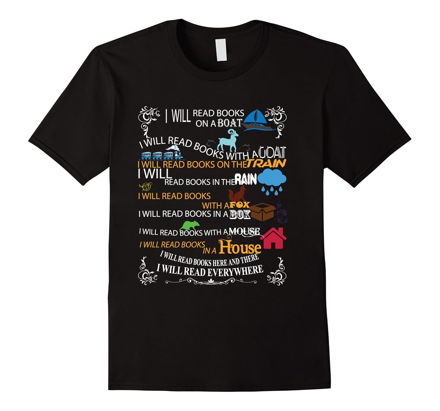 Solid colors: 100% Cotton; Heather Grey: 90% Cotton, 10% Polyester; All Other Heathers: 65% Cotton, 35% Polyester, Imported, Machine wash cold with like colors, dry low heat, I WILL READ BOOKS ON A BOAT, WITH A GOAT, HERE OR THERE, ANYWHERE! Featuring boat, goat, fox and; related icons this shirt is perfect to wear to the class party, book reading day or family holidays parties. Show your wilderness spirit by rocking this crazy, hilarious, awesome apparel. This reading t shirt is a perfect birthday gift for any book lover child!, This Bookworm T Shirt is the perfect tee for any book reader, Child or bibliophile you know that has a unique sense of humor and classy style. If you”re a real book lover, this reading t shirt is for you!, Lightweight, Classic fit, Double-needle sleeve and bottom hem