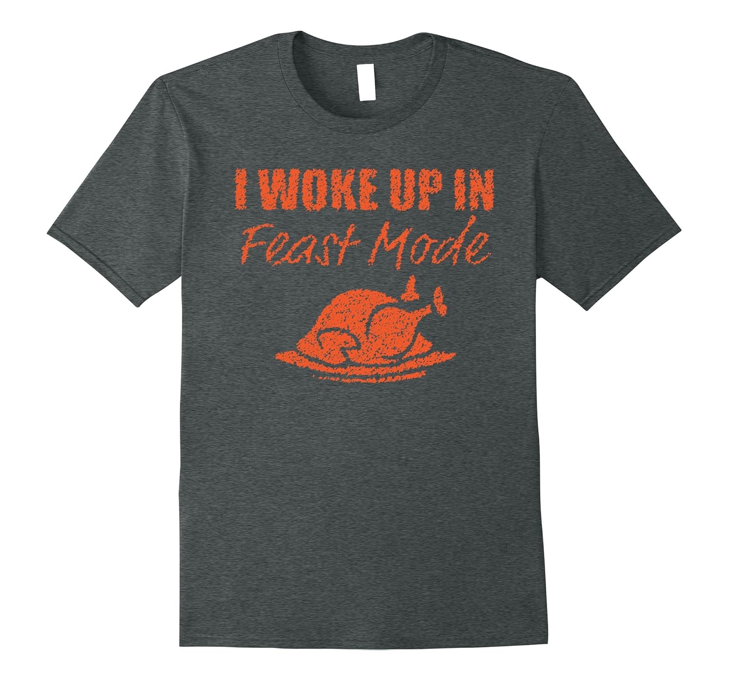 Solid colors: 100% Cotton; Heather Grey: 90% Cotton, 10% Polyester; All Other Heathers: 65% Cotton, 35% Polyester, Imported, Machine wash cold with like colors, dry low heat, I woke up in feast mode shirt orange design with turkey printed on front of tee casual graphic makes this a suitable gift and wearable t-shirt for family parties, Break the ice this thanksgiving and go black friday shopping with a sense of humor this year with this funny novelty t shirt, Lightweight, Classic fit, Double-needle sleeve and bottom hem