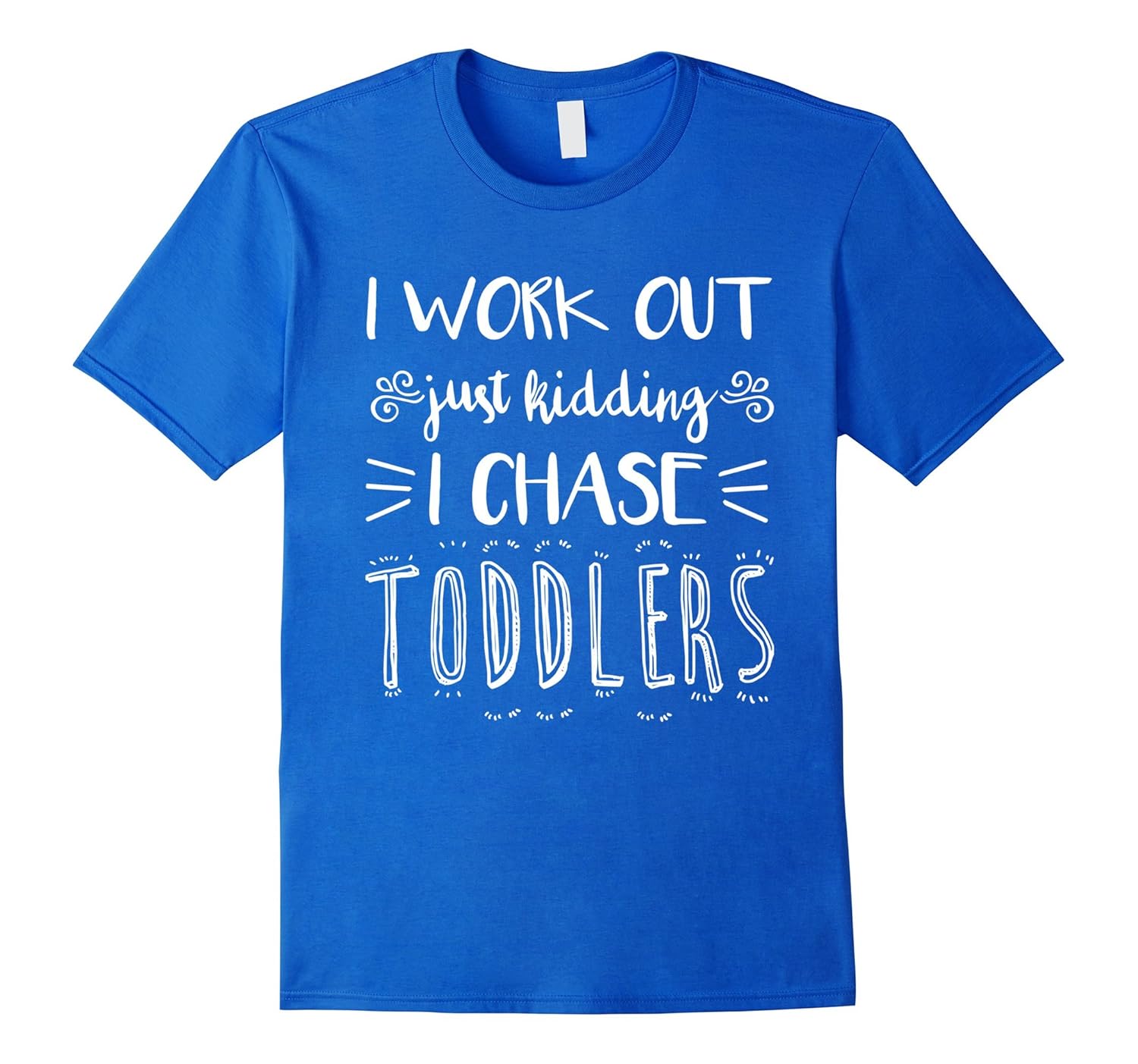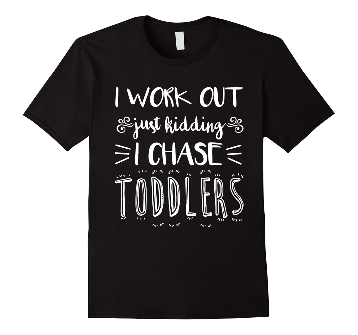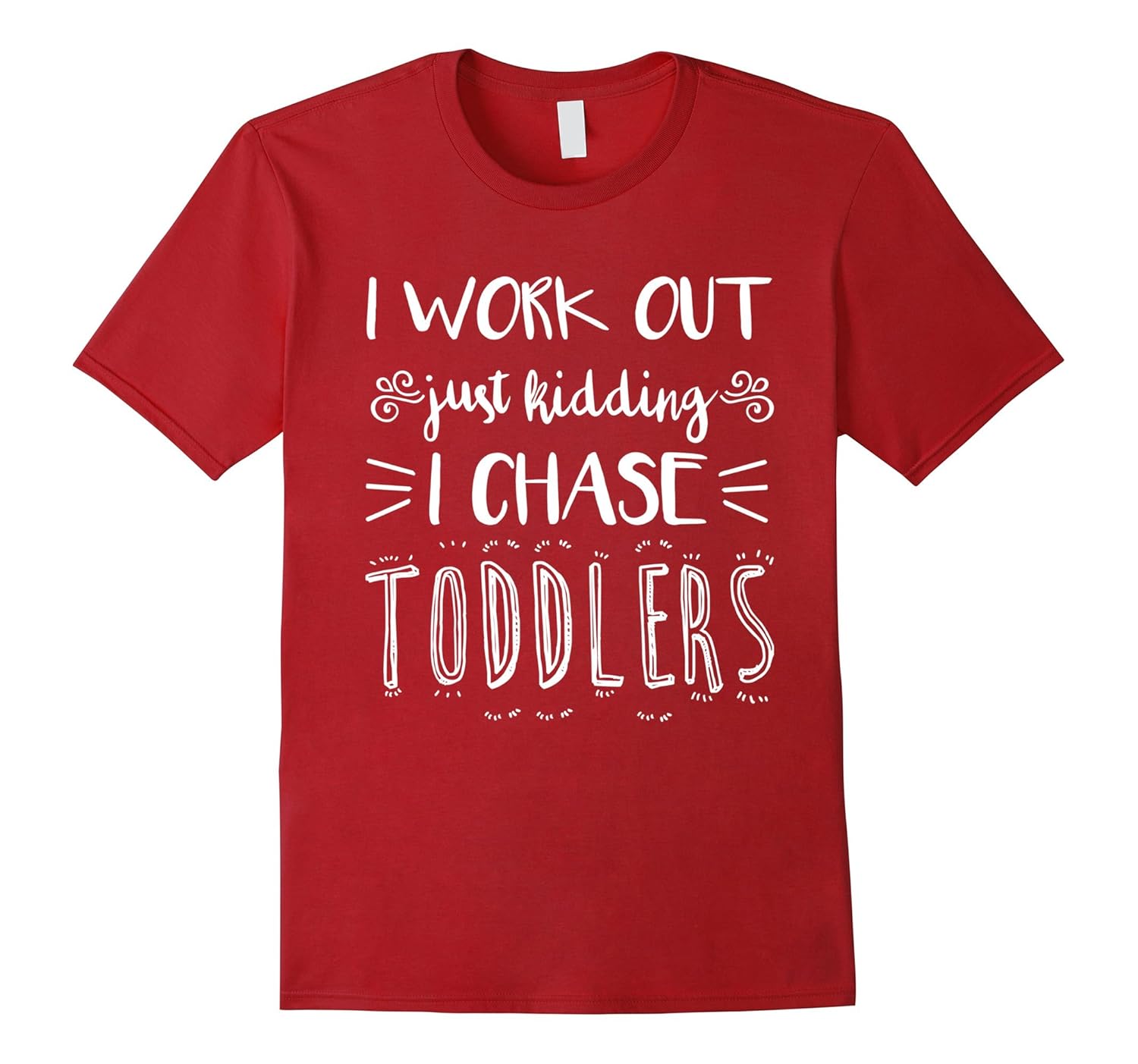 Solid colors: 100% Cotton; Heather Grey: 90% Cotton, 10% Polyester; All Other Heathers: 65% Cotton, 35% Polyester; Imported; Machine wash cold with like colors, dry low heat; If youre a parent, caregiver, or a parent / mother, you will know exactly what itis like to chase toddlers around! This shirt makes a great gift for any child educator or parent. You can rock it while babysitting, toddler watching, nannying, teaching, or while at the playground or daycare.; This Premium I Work Out Just Kidding I Chase Toddlers Funny Teacher Gift is designed and printed to be fitted. For a more loose fit, please order a size up. Available in all Mens, Womens, Boys and Girls sizes and all popular colors.; Lightweight, Classic fit, Double-needle sleeve and bottom hem