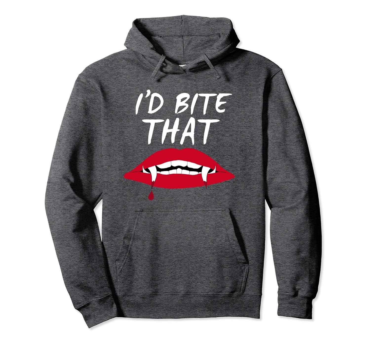 Solid colors: 80% Cotton, 20% Polyester; Heather Grey: 78% Cotton, 22% Poly; Dark Heather: 50% Cotton, 50% Polyester; Imported; Machine wash cold with like colors, dry low heat; Our Id Bite That Hoodie is a Halloween favorite. Ideal hooded sweatshirt for anyone who loves everything about Halloween.; If you like vampires, vampire teeth and blood-red lips youll enjoy wearing this hoodie. Give it as a gift to your favorite vampire. Perfect to wear when you take the kids trick or treating this year.; 8.5 oz, Classic fit, Twill-taped neck