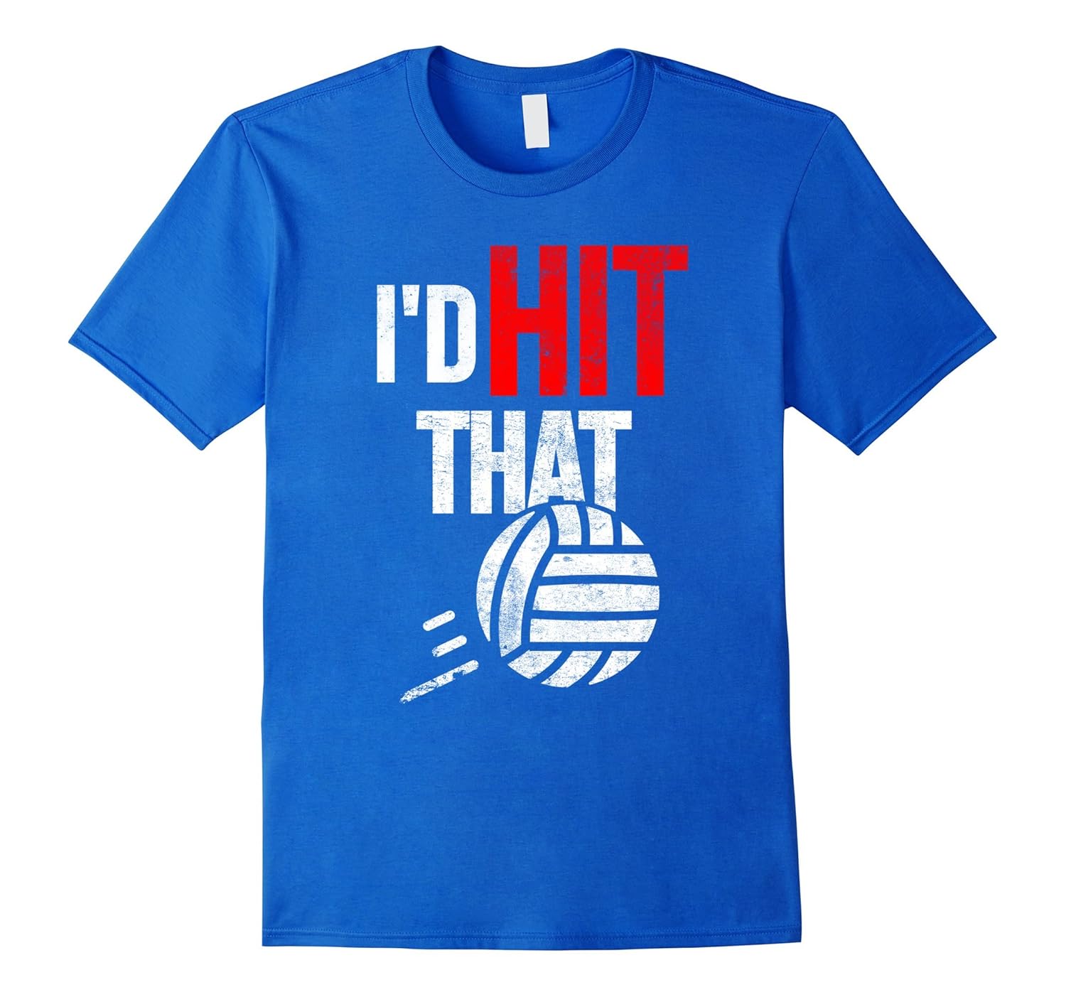 Solid colors: 100% Cotton; Heather Grey: 90% Cotton, 10% Polyester; All Other Heathers: 65% Cotton, 35% Polyester, Imported, Machine wash cold with like colors, dry low heat, Ready to train. If you are a volleyball fan, then there is no better shirt to wear while you are practicing! Lace up your sneakers and hit the court with this awesome distressed volleyball shirt!, This I”d Hit That Volleyball T-shirt contains a cool volleyball graphic and a funny sports quote. This shirt makes the perfect gift for your dad, mom, brother, aunt, uncle or any other volleyball player in your life!, Lightweight, Classic fit, Double-needle sleeve and bottom hem