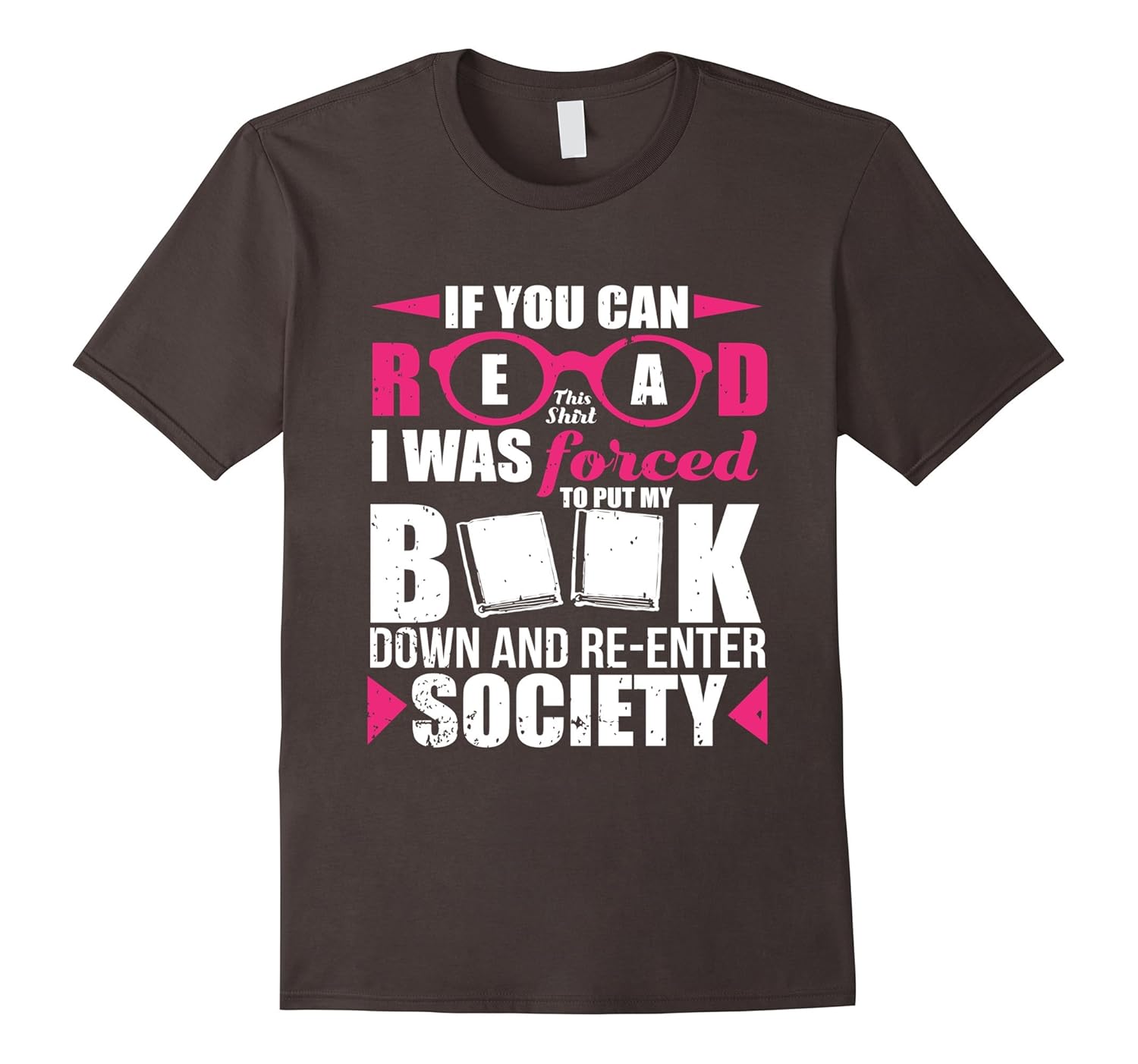 Solid colors: 100% Cotton; Heather Grey: 90% Cotton, 10% Polyester; All Other Heathers: 65% Cotton, 35% Polyester, Imported, Machine wash cold with like colors, dry low heat, Are you a Bookworm or Library Enthusiast. Then this Hilarious Books Shirt is perfect for you. This Funny Book Store Tee makes a great Gift idea for any men, women or kid who is looking for Book Reading Novelty Shirts. Featuring a Cool Books Graphic and the Funny Saying If You Can Read This Shirt I Was Forced To Put My Book Down And Re-Enter Society this awesome Book Reading Clothing is perfect for a Library Fan, Bookworm, Book Reading Lover or anyone who loves Books. Lightweight, Classic fit, Double-needle sleeve and bottom hem