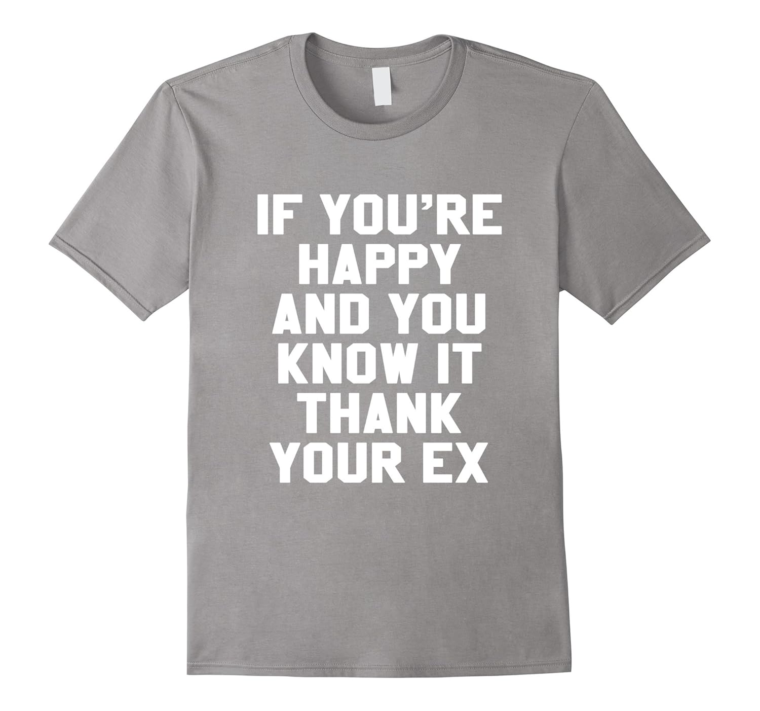 Solid colors: 100% Cotton; Heather Grey: 90% Cotton, 10% Polyester; All Other Heathers: 50% Cotton, 50% Polyester; Imported; Machine wash cold with like colors, dry low heat; Perfect graphic tee tshirt for single singles awareness anti valentines day. Makes a great gift for birthdays, Christmas and holidays. Perfect for men, women, boys, girls, kids, mom, dad, father.; This If Youre Happy And You Know It Thank Your Ex t-shirt makes a great gag gift for any funny saying, sarcastic, novelty, humor, practical joke, cute, cool, funny tee shirt or funny t-shirt enthusiast.; Lightweight, Classic fit, Double-needle sleeve and bottom hem