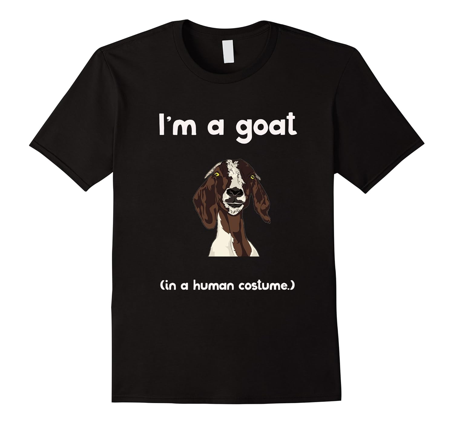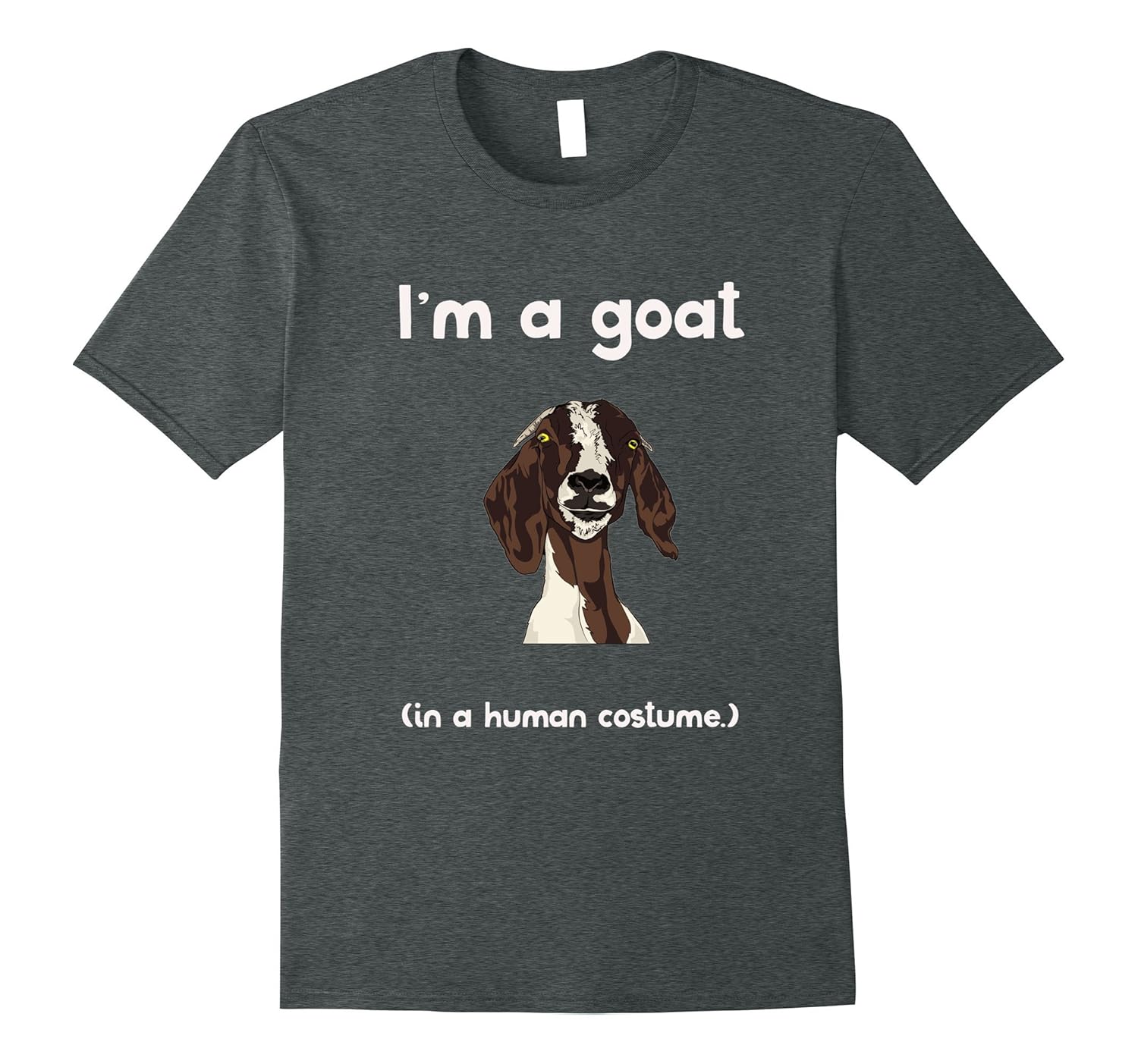 Solid colors: 100% Cotton; Heather Grey: 90% Cotton, 10% Polyester; All Other Heathers: 65% Cotton, 35% Polyester, Imported, Machine wash cold with like colors, dry low heat, Do you love goats. These playful rambunctious creatures are the best Halloween costume replacement for people that are secretly goats beneath their human costume! Rock this funny goat tee shirt that shows off your favorite animal, the goat!, This Im A Goat In A Human Costume tee runs small, please size up! Don”t know what costume to wear. This goat shirt is the perfect Halloween gift for the cute goat lovers in your life. Lightweight, Classic fit, Double-needle sleeve and bottom hem