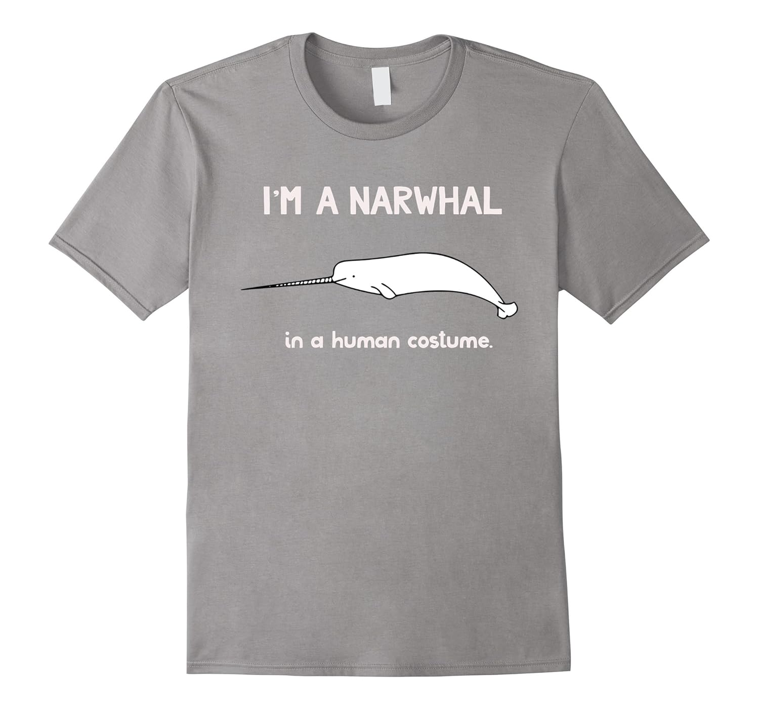 Solid colors: 100% Cotton; Heather Grey: 90% Cotton, 10% Polyester; All Other Heathers: 65% Cotton, 35% Polyester, Imported, Machine wash cold with like colors, dry low heat, Are narwhals your spirit animal. This unicorn of the sea is the best Halloween costume replacement for people that are secretly narwhals beneath their human costume! Rock this funny narwhal tee shirt that shows off your favorite sea creature, the narwhal!, This Im A Narwhal This Is My Human Costume tee runs small, please size up! Be it halloween parties, trick-or-treating or costume contests, this shirt is the perfect gift for the narwhal lovers in your life. Lightweight, Classic fit, Double-needle sleeve and bottom hem