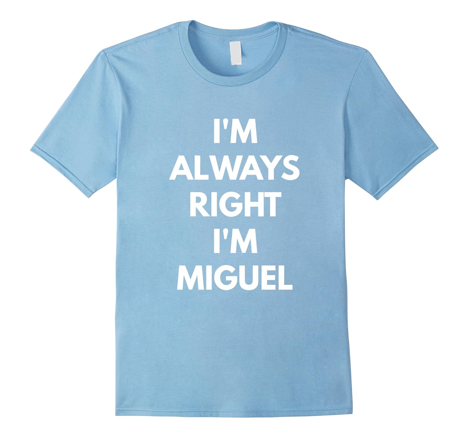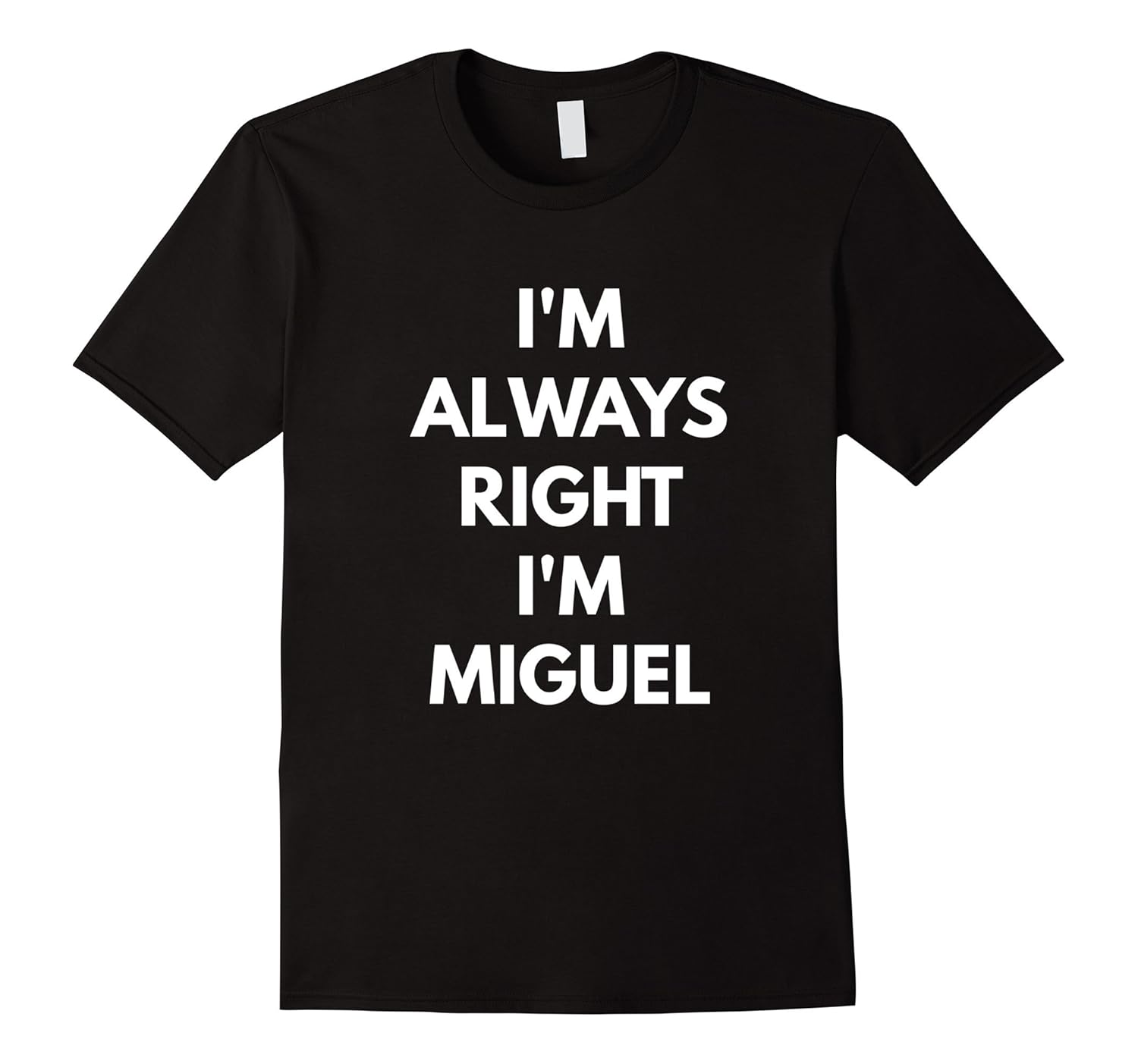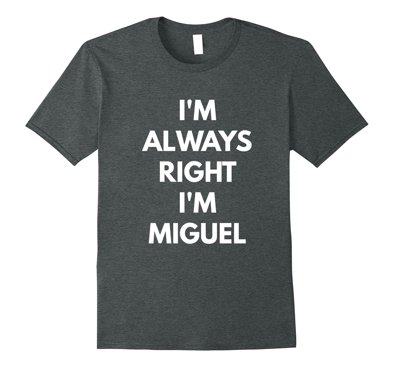 Solid colors: 100% Cotton; Heather Grey: 90% Cotton, 10% Polyester; All Other Heathers: 65% Cotton, 35% Polyester, Imported, Machine wash cold with like colors, dry low heat, Funny sarcastic shirt to wear if your name is Miguel. I”m Always Right I”m Miguel t-shirt sizes runs small. We recommend ordering a size up. Please see the sizing chart image for more details. Lightweight, Classic fit, Double-needle sleeve and bottom hem