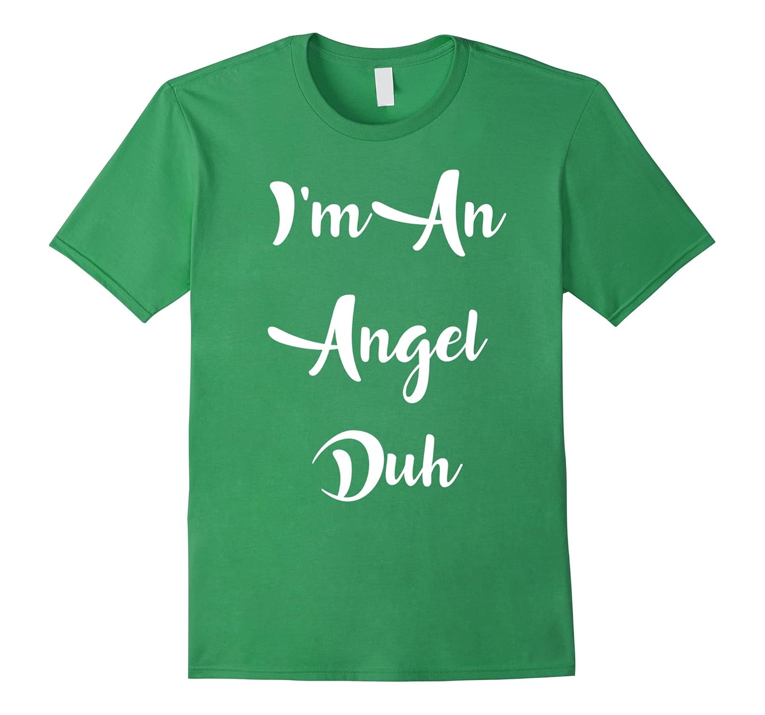 Solid colors: 100% Cotton; Heather Grey: 90% Cotton, 10% Polyester; All Other Heathers: 65% Cotton, 35% Polyester, Imported, Machine wash cold with like colors, dry low heat, Im An Angel Duh is a funny Christmas outfit or costume for couples and the whole family. Great gift idea for your kids, wife and husband. Dress up with you girlfriend or boyfriend with matching tshirts for the Holidays. Perfect gift for boys and girls, Great Christmas easy costume t shirt idea to combine with cool and cute angel wings with feathers or antler headband. Wear this tshirt to a party or family dinner. Perfect Christmas present idea for a friend, mom and dad. Lightweight, Classic fit, Double-needle sleeve and bottom hem