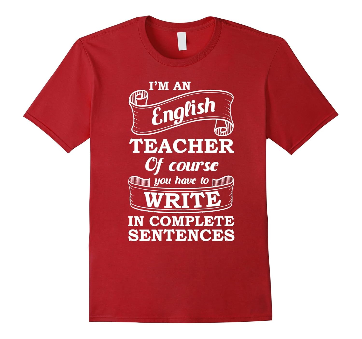 Solid colors: 100% Cotton; Heather Grey: 90% Cotton, 10% Polyester; All Other Heathers: 50% Cotton, 50% Polyester; Imported; Machine wash cold with like colors, dry low heat; Texting an English teacher means always having to write in complete sentences before you hit send. The funny Im an English Teacher t-shirt is perfect for the brother, sister, mom, dad, grandma, grandpa, aunt, uncle, cousin, or best friend who teaches English in a middle school, junior high, high school, college, or university.; The casual tee is sure to get a few laughs from co-workers and friends while at a teachers convention, bookstore, library, book club meeting, tutoring session, family gathering, school function, or casual restaurant. Teachers can also show off their shirt while grading, teaching, shopping, working out, traveling, sightseeing, reading, writing, or relaxing after a long day.; Lightweight, Classic fit, Double-needle sleeve and bottom hem